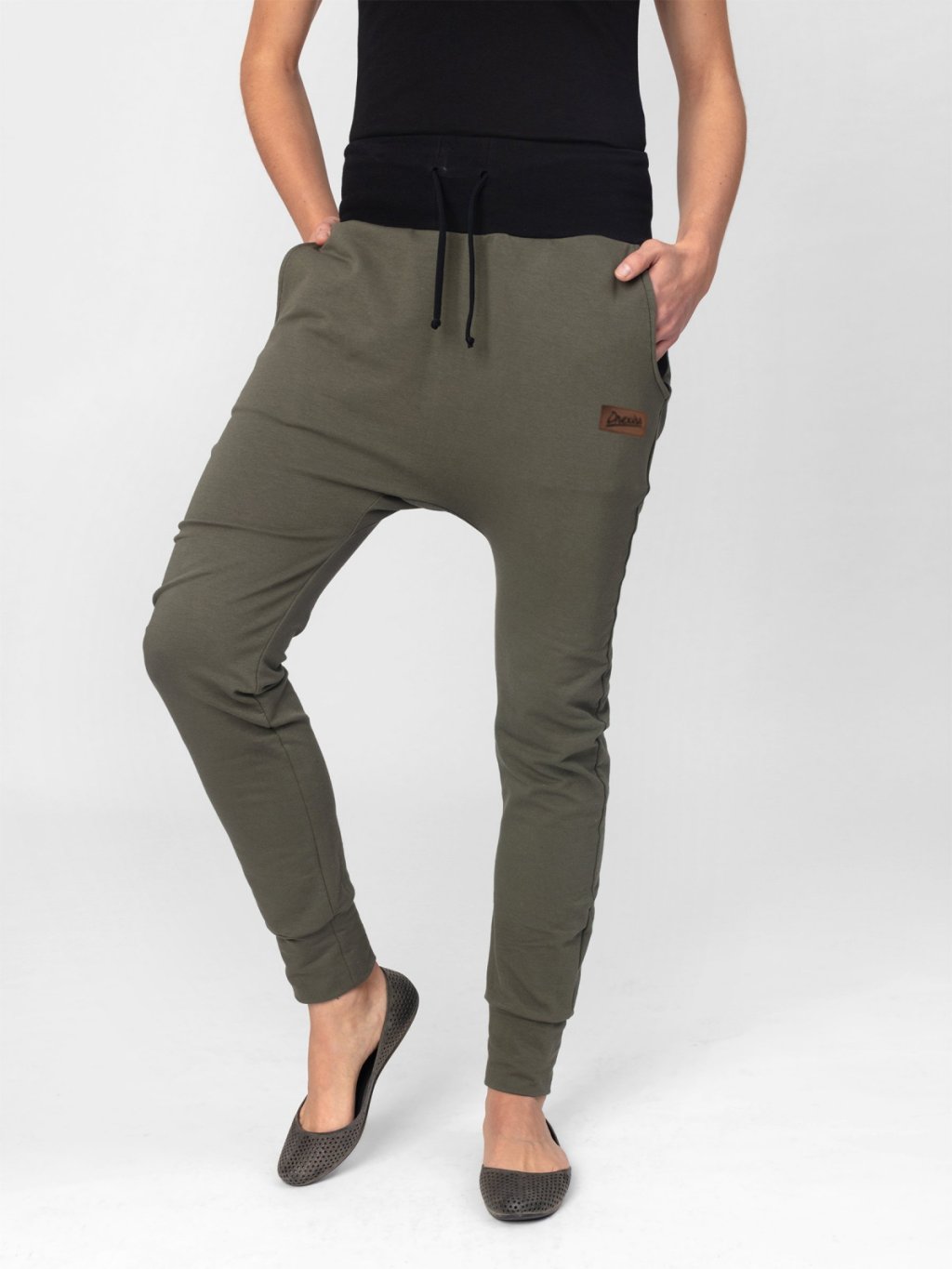 Dámské baggy jsou navrženy tak, aby dokonale spojovaly komfort, funkčnost a styl. Vysoký pas z pružného nápletu s praktickou šňůrkou na stažení zajistí, že kalhoty pohodlně sedí. Černě laděný pas i podšívka kapes přidávají modelu decentní, ale výrazný designový detail.