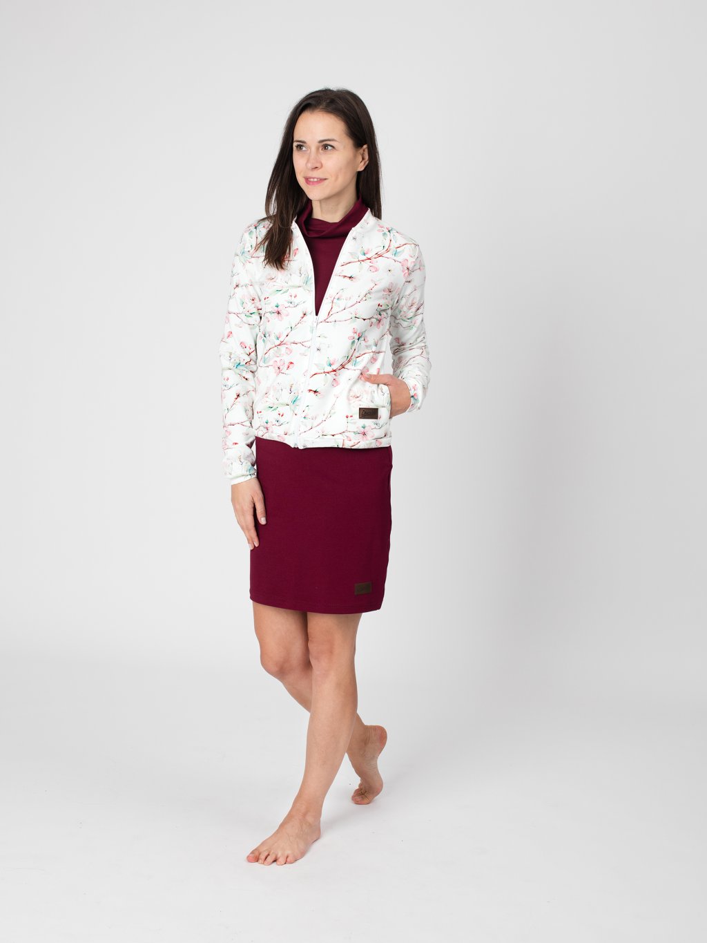 Dámský bomber spojuje moderní sportovně-elegantní vzhled s maximálním komfortem. Je ušitý z příjemného bavlněného úpletu vyšší gramáže. Délka je navržena tak, aby lemovala pas, což lichotí postavě a umožňuje snadné kombinování s kalhotami, sukní nebo šaty.