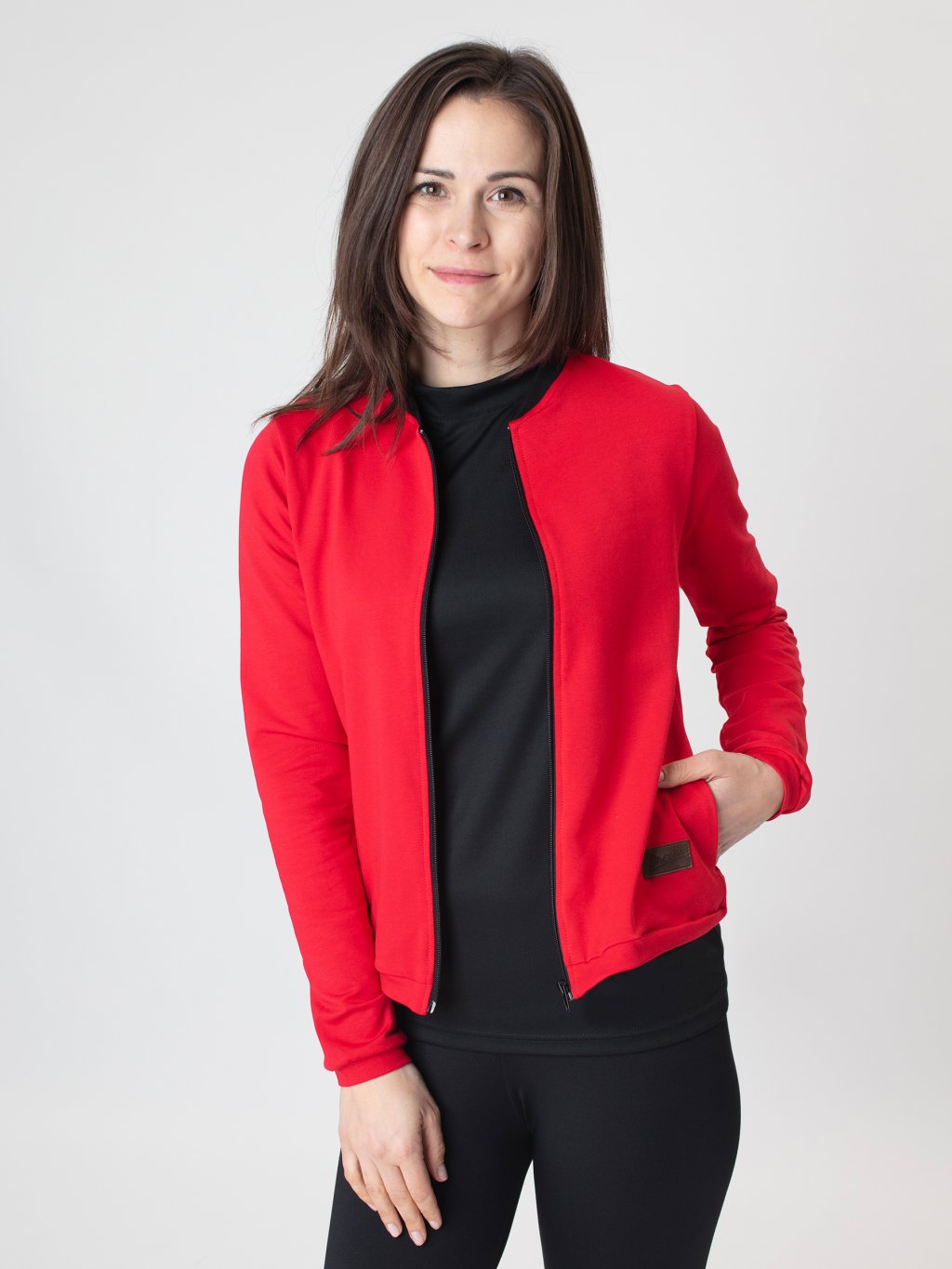 Dámský bomber spojuje moderní sportovně-elegantní vzhled s maximálním komfortem. Je ušitý z příjemného bavlněného úpletu vyšší gramáže. Délka je navržena tak, aby lemovala pas, což lichotí postavě a umožňuje snadné kombinování s kalhotami, sukní nebo šaty.