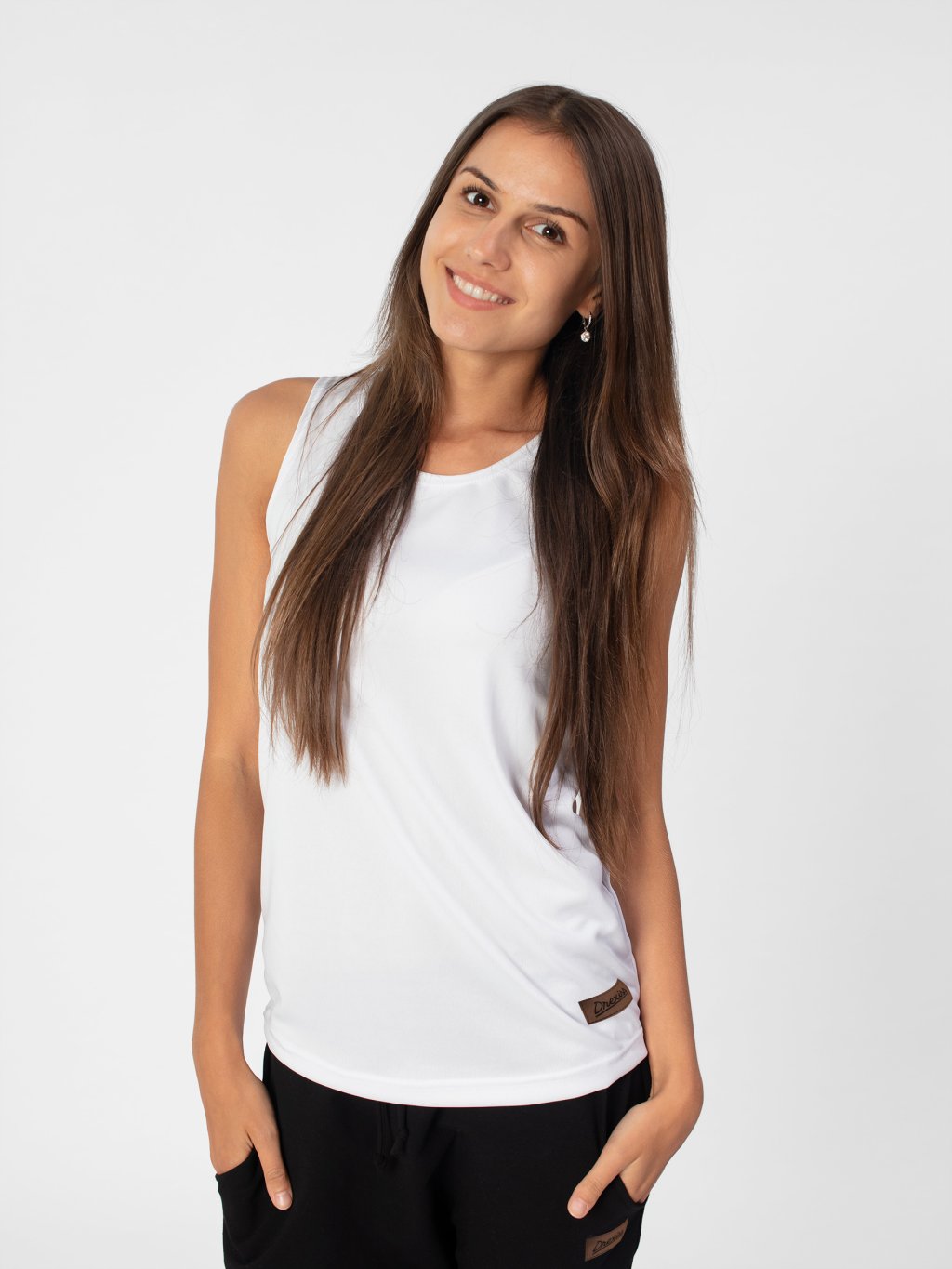 Dámské tílko spojuje funkčnost a sportovní eleganci. Je ušito z materiálu CoolMax®, který efektivně odvádí vlhkost od těla, rychle schne, je lehký, prodyšný a poskytuje UV ochranu (UPF 40+) – ideální volba do letních dnů i pro sportovní aktivity.