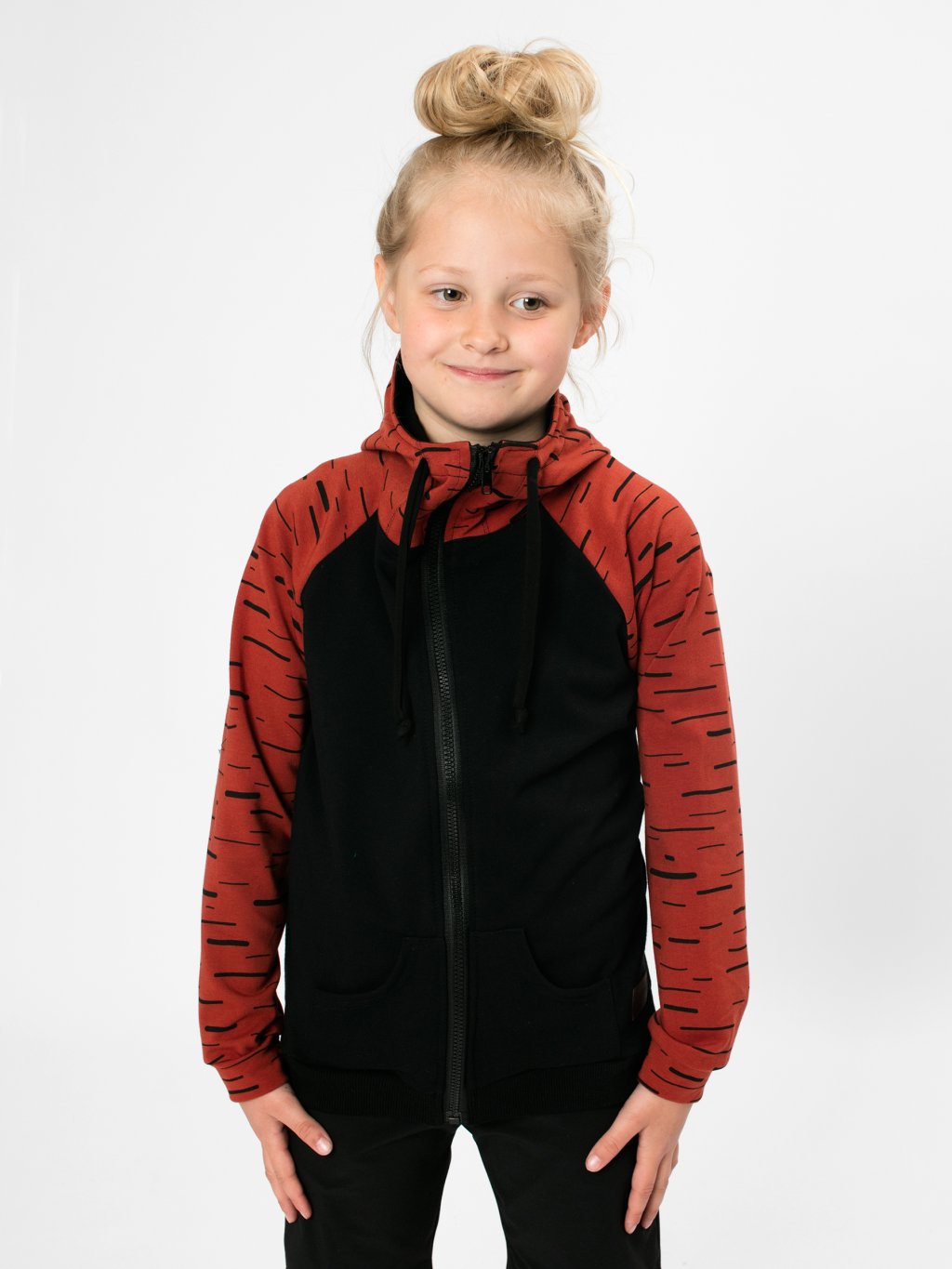 Dětská mikina SKATE spojuje volnost pohybu, pohodlí a moderní design. Raglánový střih s kontrastními rukávy a kapucí působí hravě a trendy.