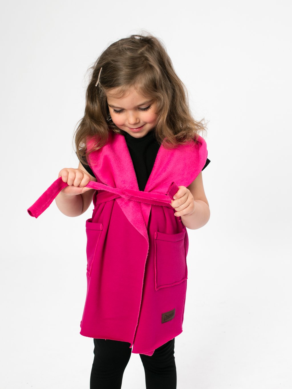 Velká kapuce ochrání před větrem a chladem a prostorné kapsy se postarají o všechny drobnosti, které je potřeba mít po ruce – od kapesníčku až po malou hračku. Vesta se hodí k legínám, džínám i sukni a díky univerzálnímu designu ji děti unosí do školky, školy i na rodinné procházky.