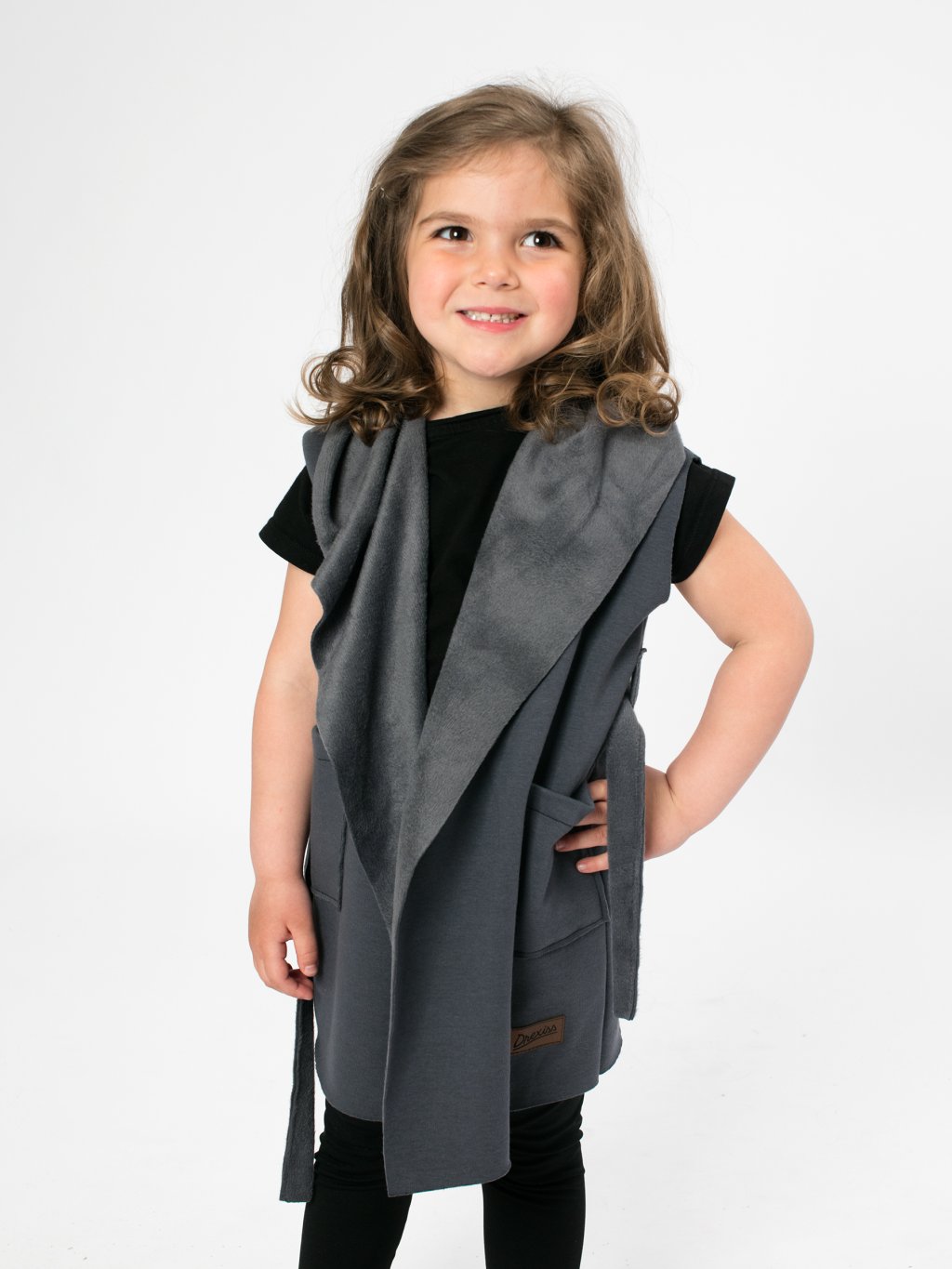 Velká kapuce ochrání před větrem a chladem a prostorné kapsy se postarají o všechny drobnosti, které je potřeba mít po ruce – od kapesníčku až po malou hračku. Vesta se hodí k legínám, džínám i sukni a díky univerzálnímu designu ji děti unosí do školky, školy i na rodinné procházky.
