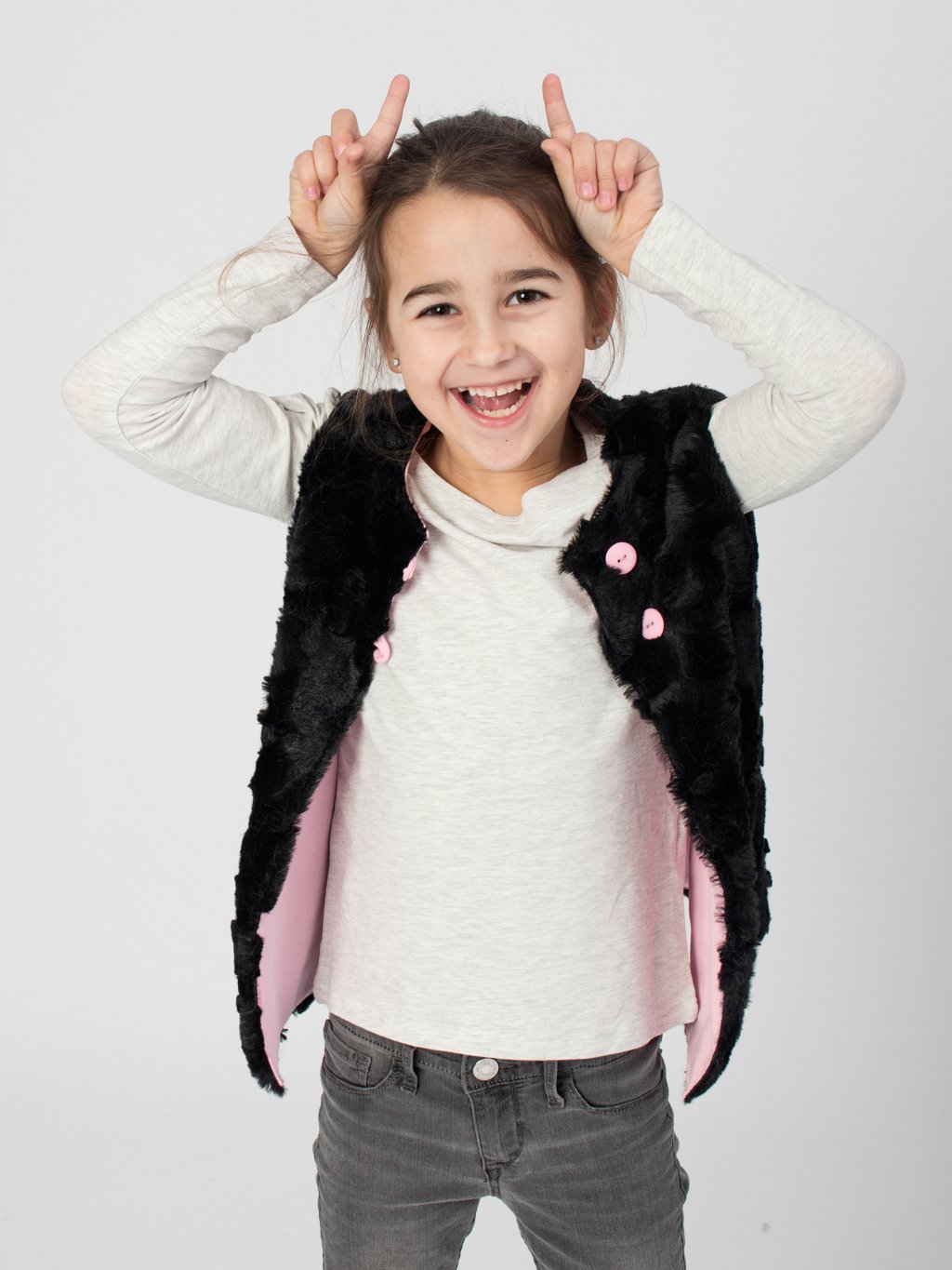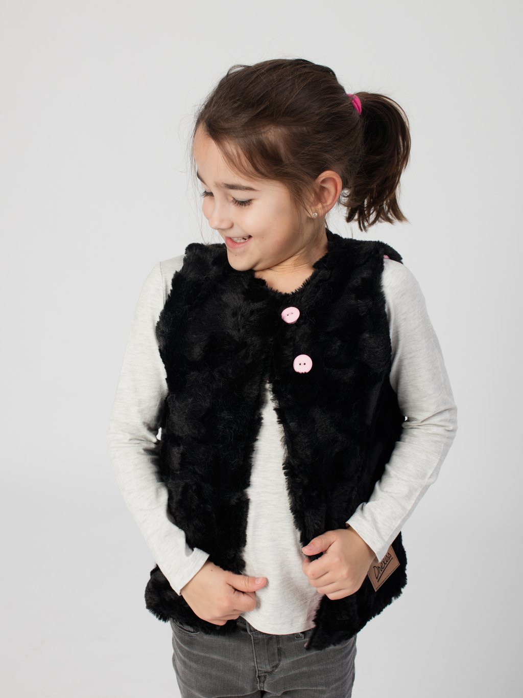Dětská vesta COLETE MOUSE je kousek, který nadchne každou malou princeznu. Na první pohled zaujme hebkým „myším kožíškem“ a zapínáním na dva výrazné knoflíčky, které dodávají vestě hravý nádech.