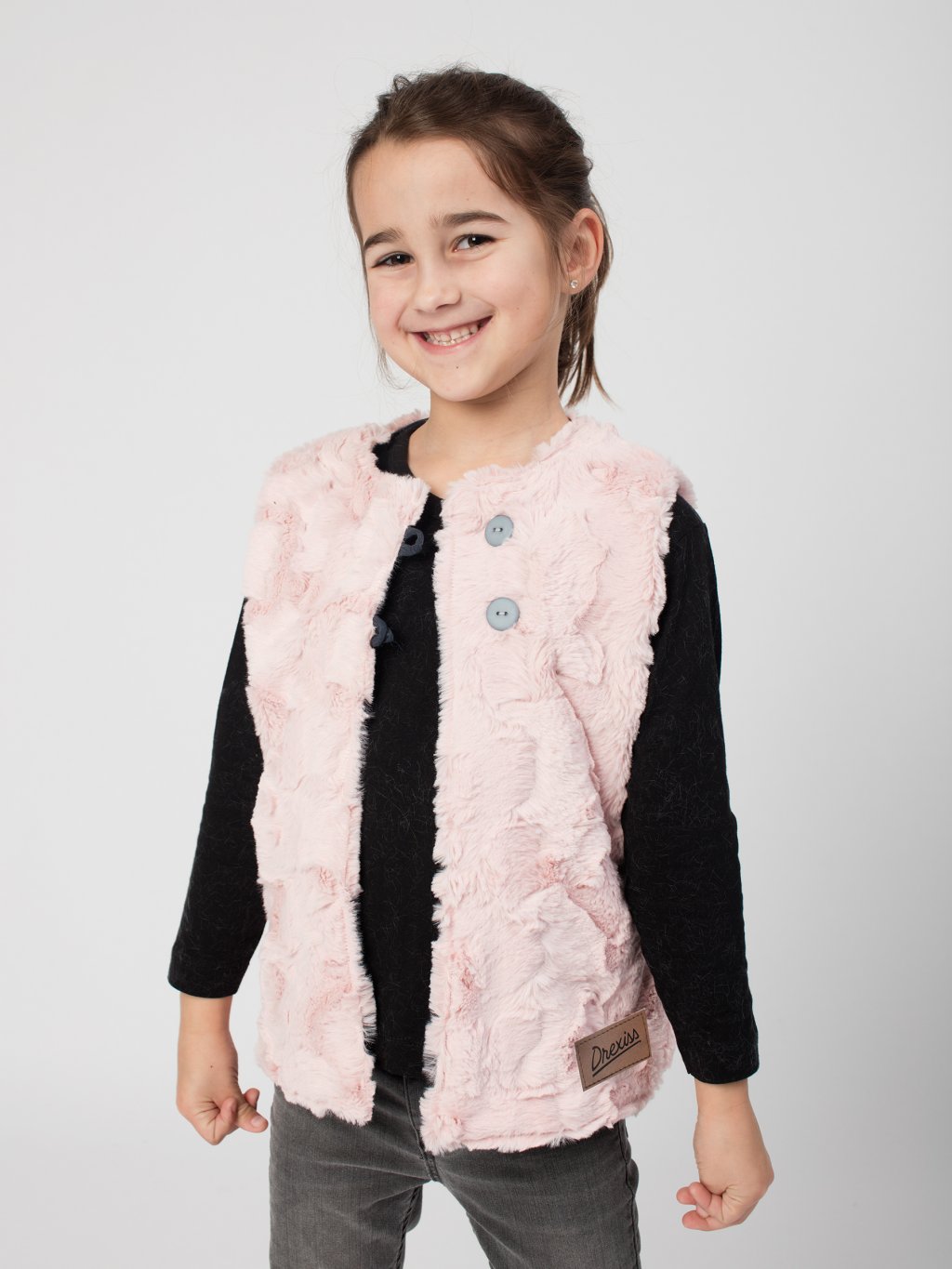 Dětská vesta COLETE MOUSE je kousek, který nadchne každou malou princeznu. Na první pohled zaujme hebkým „myším kožíškem“ a zapínáním na dva výrazné knoflíčky, které dodávají vestě hravý nádech.