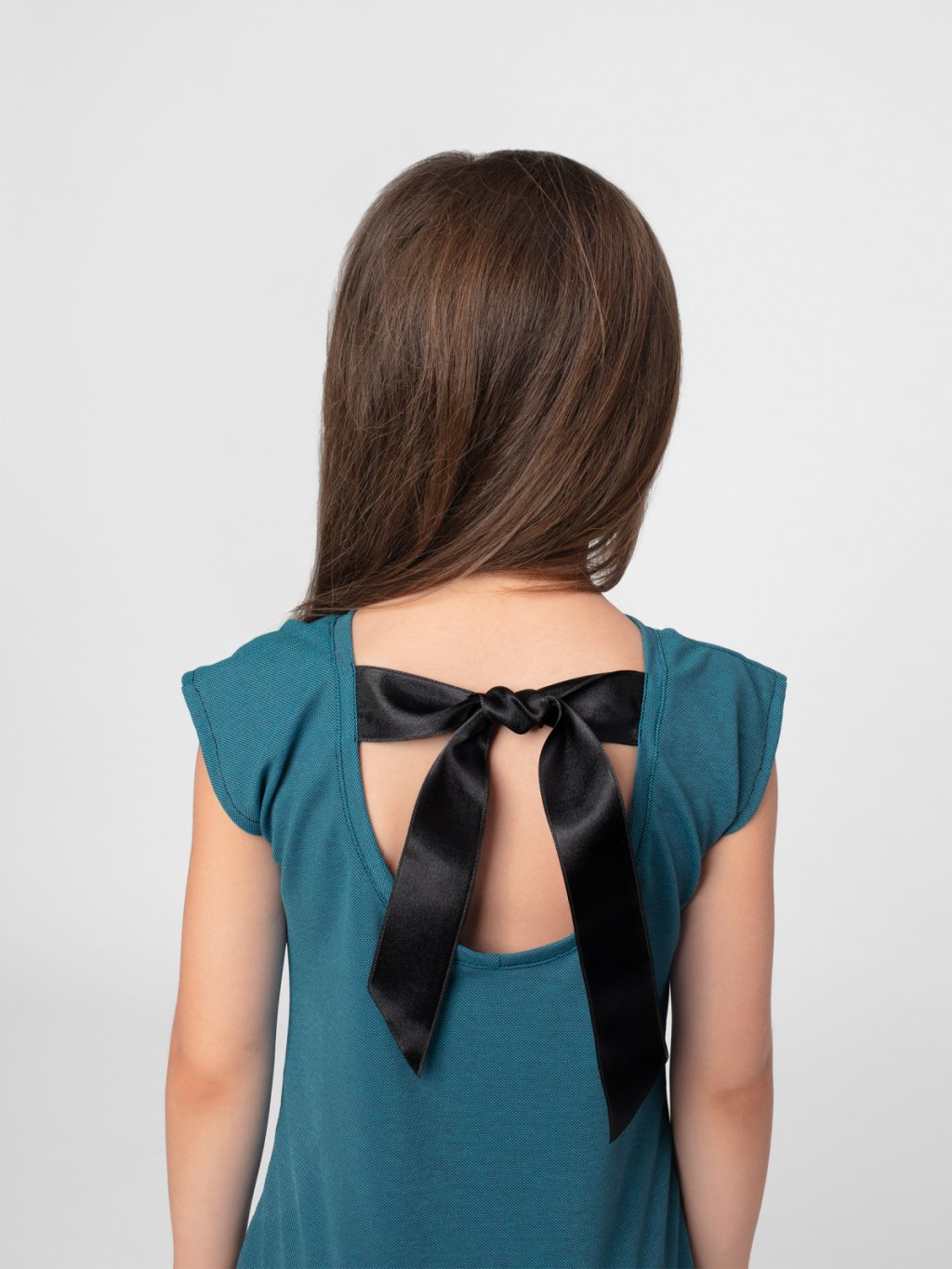 - Saténová mašle na zádech – stylový a hravý detail pro malé princezny.