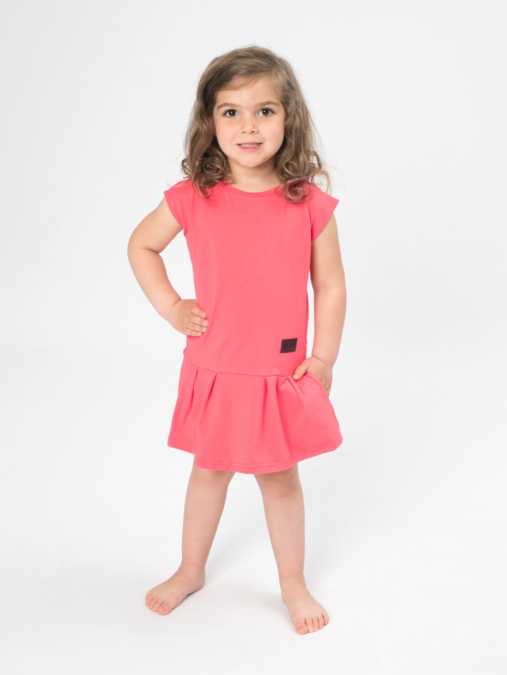 Šaty jsou ušité z příjemného bavlněného úpletu, který je pružný, prodyšný a dobře se přizpůsobí pohybu. Díky lehkému materiálu se hodí i do horkých dnů a dětem poskytnou komfort po celý den – ať už vyrazí do školy, na výlet, nebo si budou hrát venku.