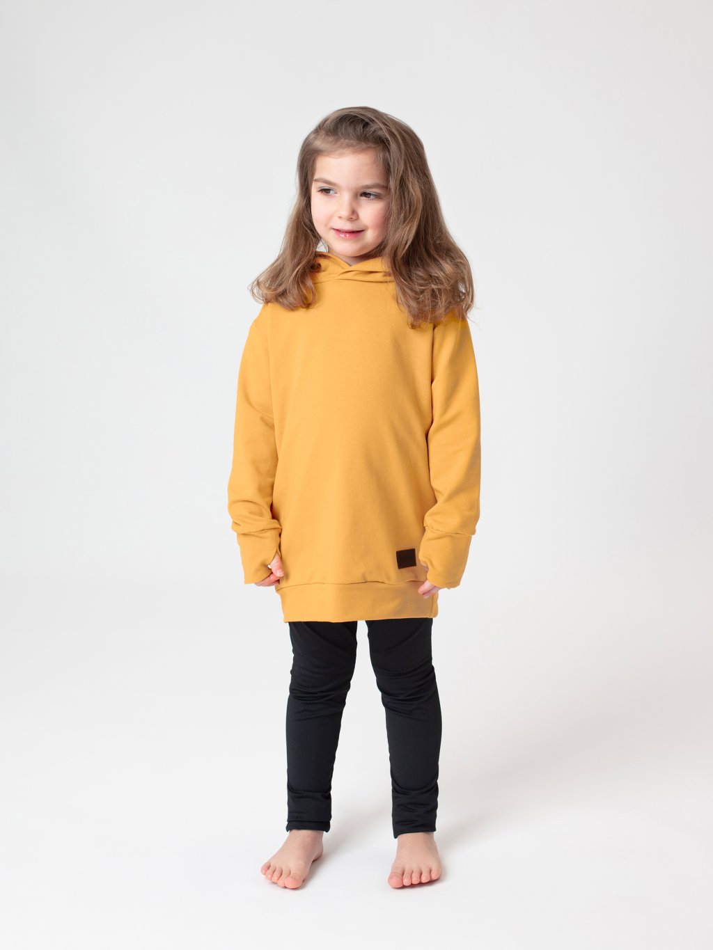 Dětské mikinošaty spojují pohodlí mikiny a styl šatů v jednom kousku, který si malé slečny zamilují. Prostorná kapuce bez stahování dodává ležérní vzhled, zatímco prodloužené rukávy s náplety a praktickými otvory na palce zajišťují maximální komfort i v chladnějších dnech. Skryté kapsy poskytují dostatek prostoru na drobnosti a zároveň nenarušují čistý design.