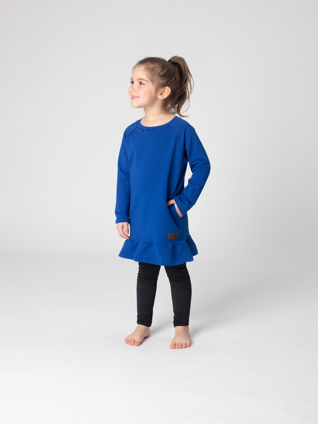 - Univerzální využití – lze nosit jako šaty nebo delší mikinu, hodí se k legínám i kalhotám.