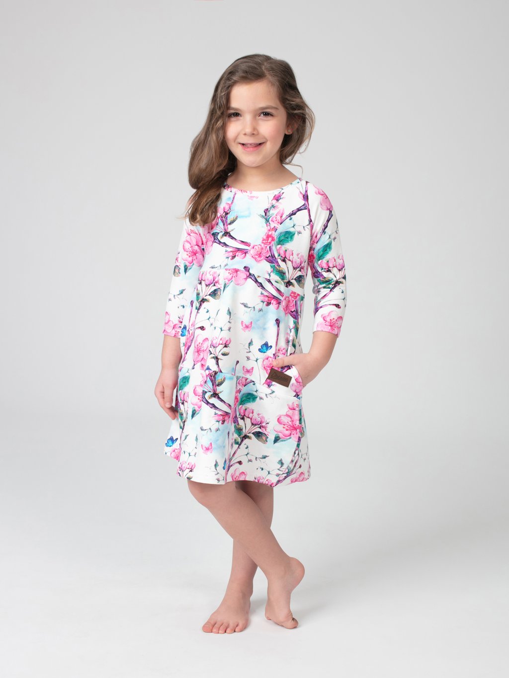 Podzimní šaty SOFIE pro malé slečny s 3/4 rukávem spojují volnost pohybu s půvabným vzhledem. Postupně členěný střih dodává šatům lehkost a hravost, zatímco lodičkový výstřih a 3/4 rukávy přidávají elegantní, ale stále dětsky jemný charakter. Praktické kapsy jsou skvělým pomocníkem na všechny drobnosti, které si holčičky chtějí nosit s sebou.