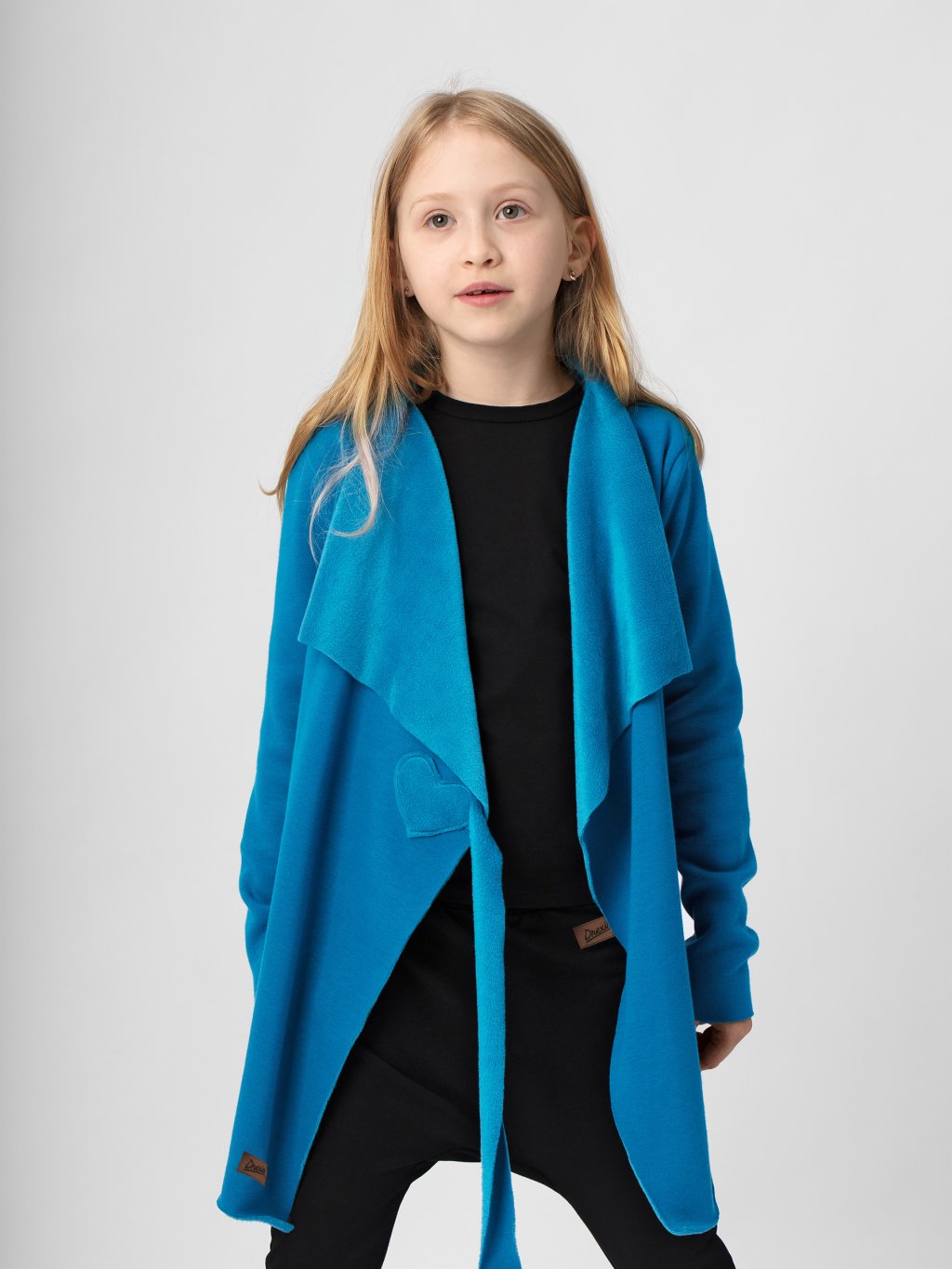 Prostorné kapsy se postarají o všechny drobnosti, které je potřeba mít po ruce – od kapesníčku až po malou hračku. Kardigan se hodí k legínám, džínám i sukni a díky univerzálnímu designu jej děti unosí do školky, školy i na rodinné procházky.