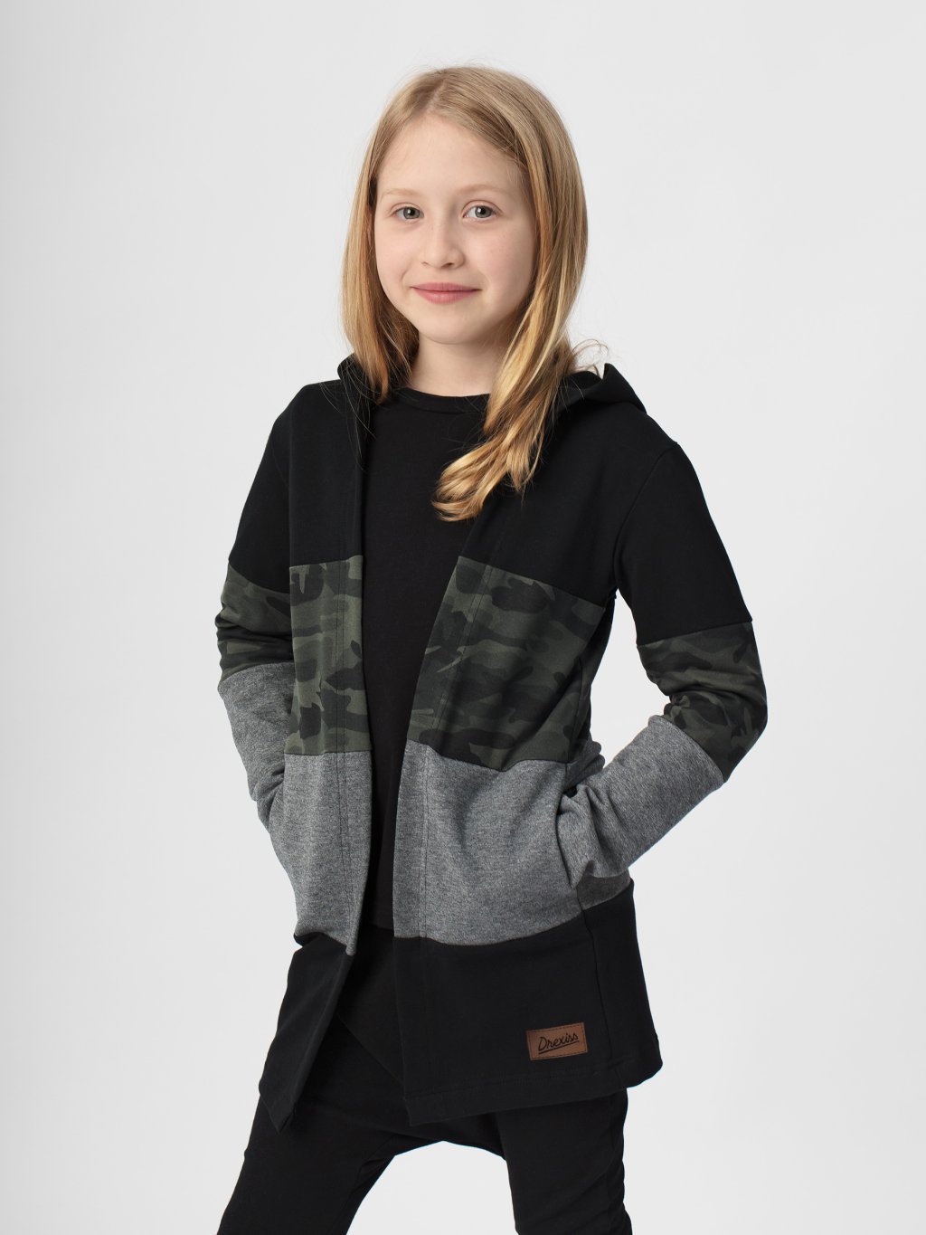 Kardigan je ušitý z příjemného bavlněného úpletu vyšší gramáže, který se dobře nosí po celý den. Snadno se kombinuje s legínami, džínami i šaty a hodí se jak na běžné nošení do školy, tak i na rodinné výlety nebo volný čas s kamarády. Je to univerzální kousek, který si děti rychle oblíbí pro pohodlí i stylový vzhled.