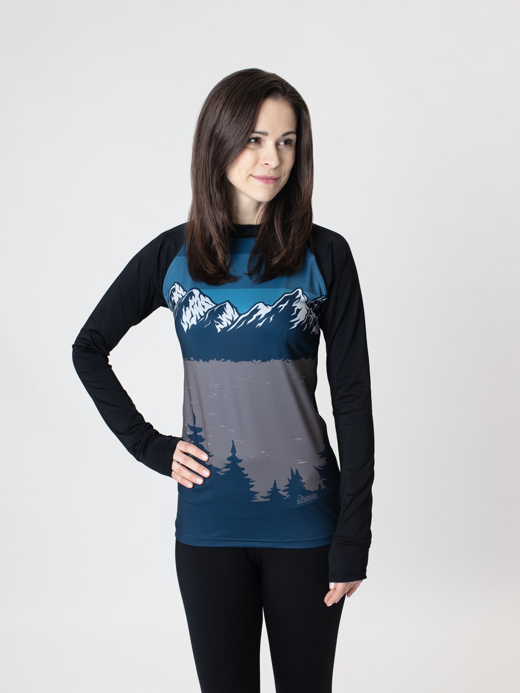 Drexiss FULL MOUNTAINS PETROL COOLMAX dlouhý rukáv