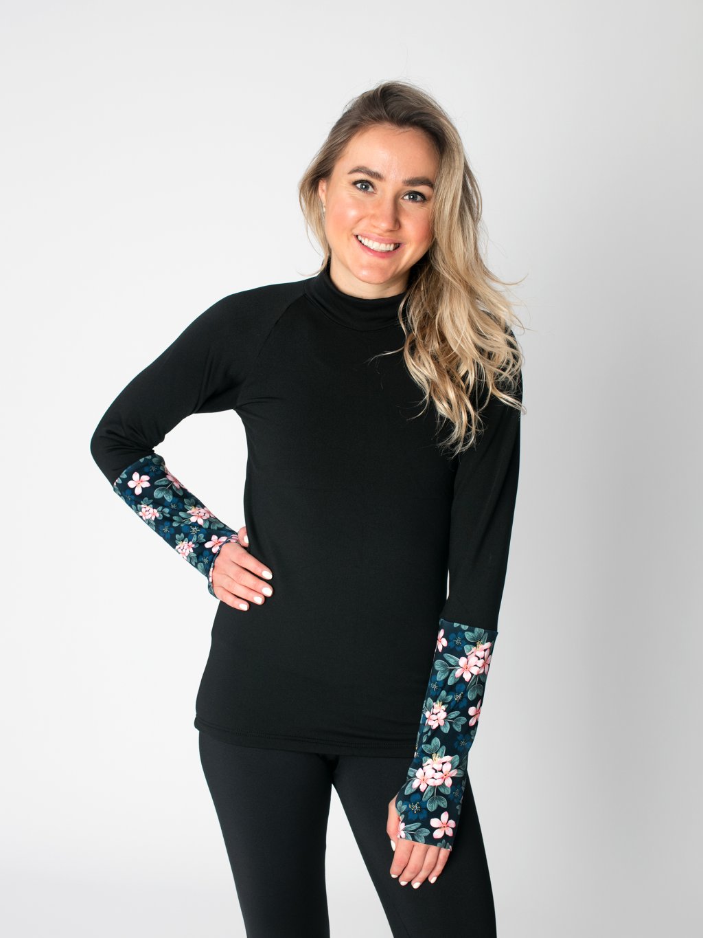- Rukávy s designem a otvory na palce – stylový detail a praktická funkce v jednom