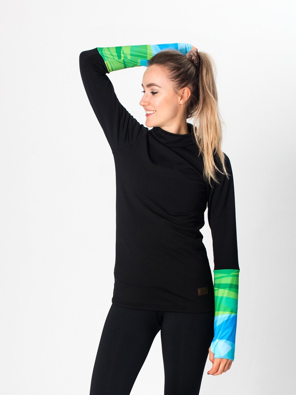 - Rukávy s designem a otvory na palce – stylový detail a praktická funkce v jednom