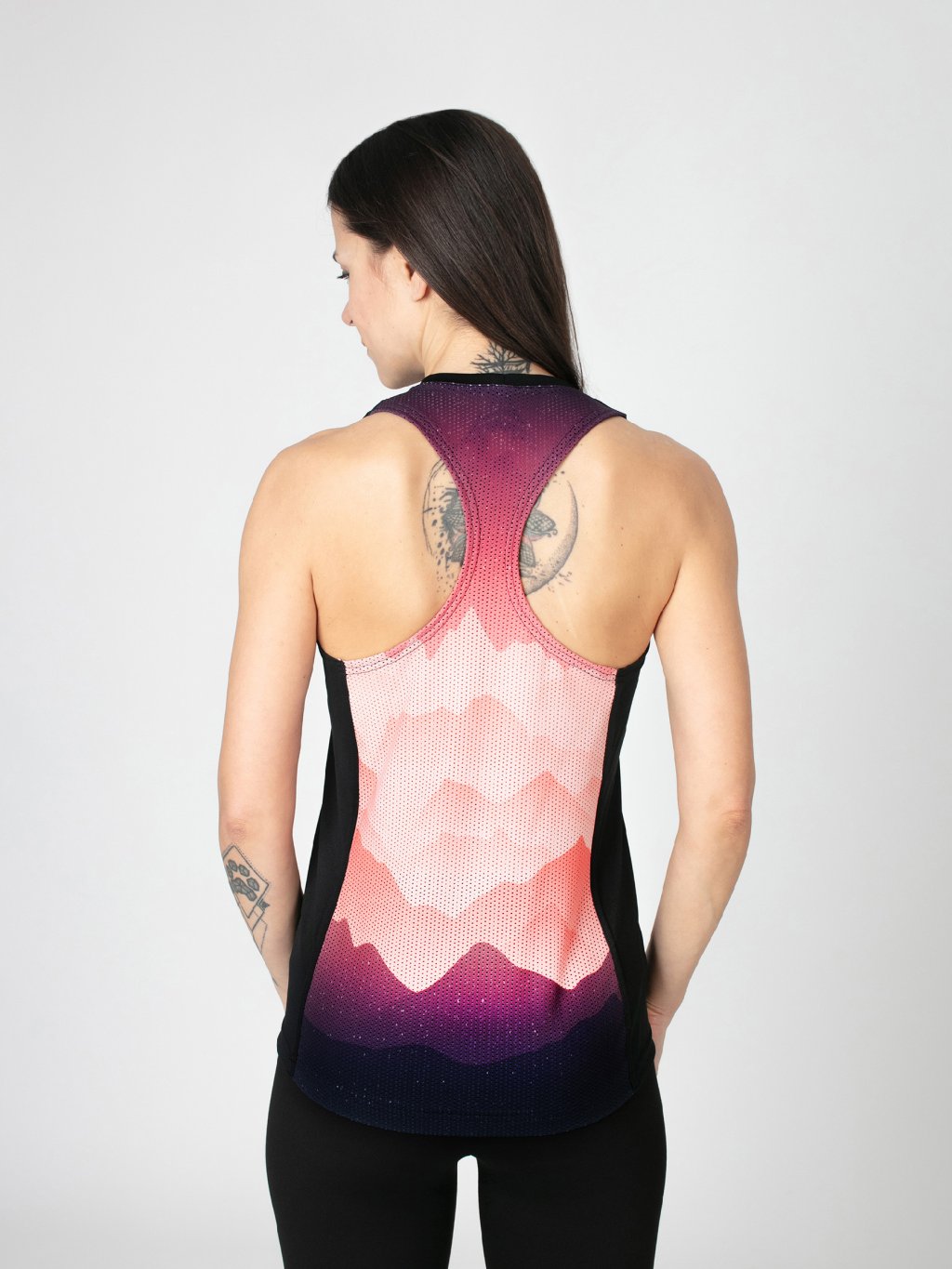Zadní díl tvoří lehký perforovaný funkční úplet s boxerským střihem, který zajistí maximální volnost pohybu a vzdušnost. Je doplněn o originální design, který dodává tílku jedinečný charakter a podtrhuje jeho sportovně-elegantní styl. Tento detail působí sportovně a zároveň velmi žensky.