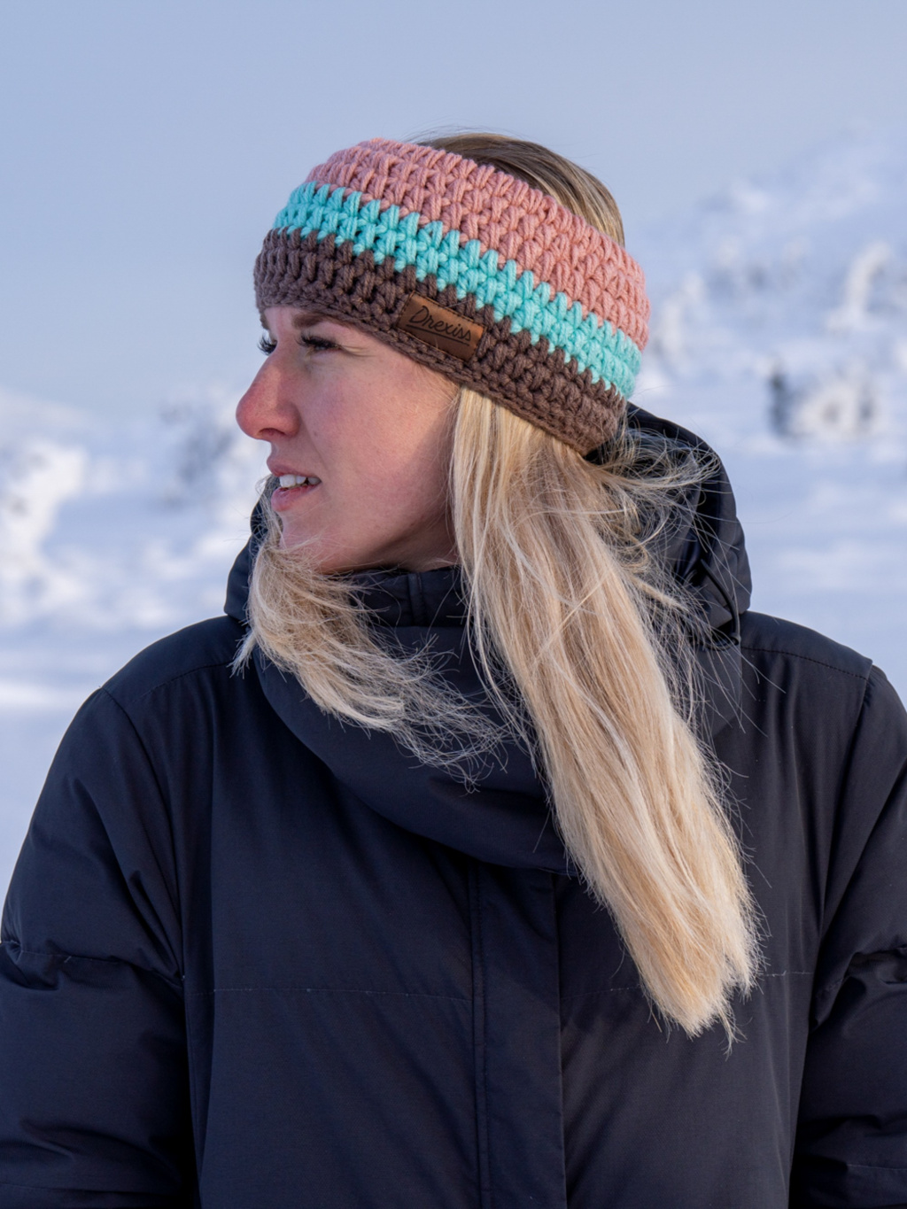 Ručně háčkovaná čelenka z kvalitní antipilingové příze spojuje jemnost ruční výroby s funkčními vlastnostmi. Podšívka z materiálu Coolmax® odvádí vlhkost, rychle schne a současně chrání před chladem, takže udržuje čelo i uši v teple i při chladném počasí.