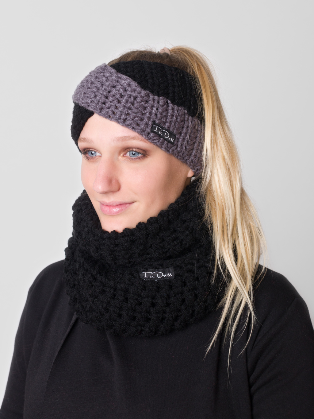Drexiss háčkovaný set čelenka TWIST DOUBLE ANTRACIT/BLACK a nákrčník