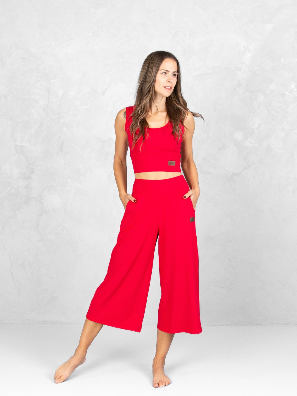 Kombinace pohodlí a stylu činí kalhoty SOUL MIDI s vysokým pasem a širokými nohavicemi ideálním výběrem jak pro pracovní schůzky, tak pro neformální odpolední procházky.