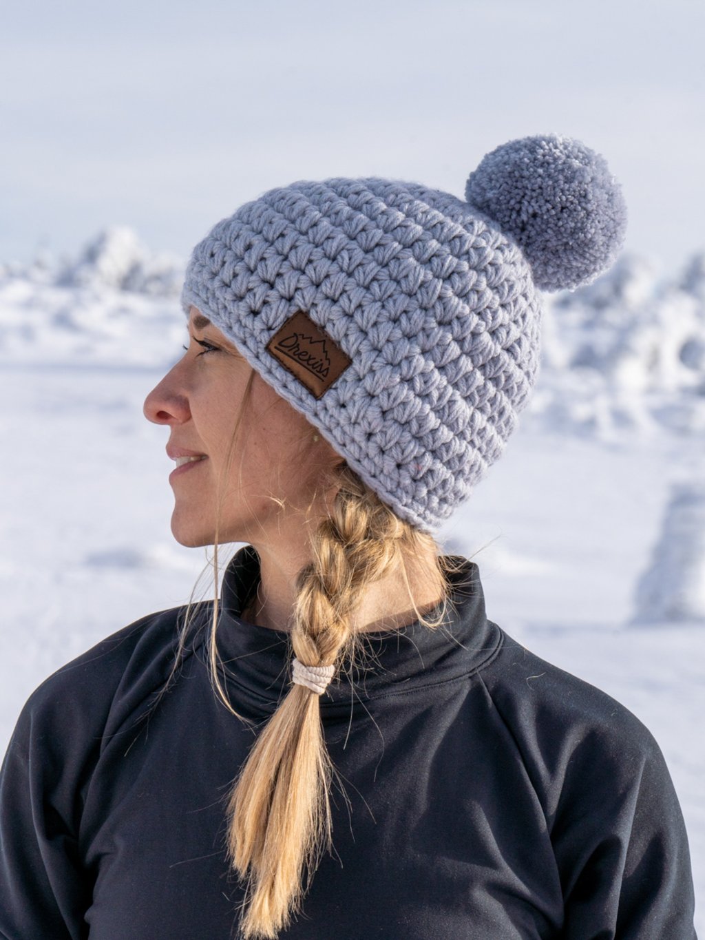 Výrazná bambule dodává čepici moderní a hravý vzhled, takže kulich vynikne jak ve městě, tak na horách. Spojuje ruční výrobu, funkční vlastnosti a styl, který je na první pohled vidět.