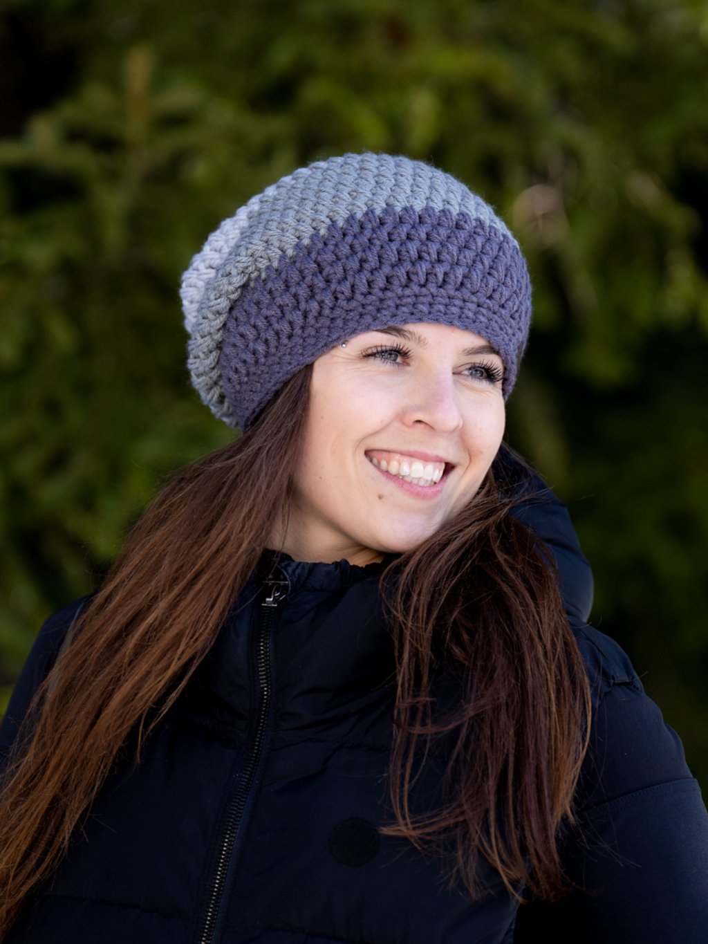 Každý kulich je ručně háčkovaný. Spodní lem je uháčkovaný pevněji, aby dobře držel i na menší hlavě, a postupným nošením, případným roztažením se přirozeně přizpůsobí.