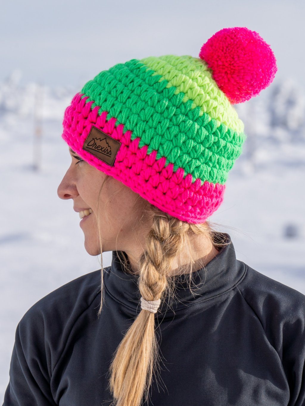 Výrazná bambule dodává čepici moderní a hravý vzhled, takže kulich vynikne jak ve městě, tak na horách. Spojuje ruční výrobu, funkční vlastnosti a styl, který je na první pohled vidět.