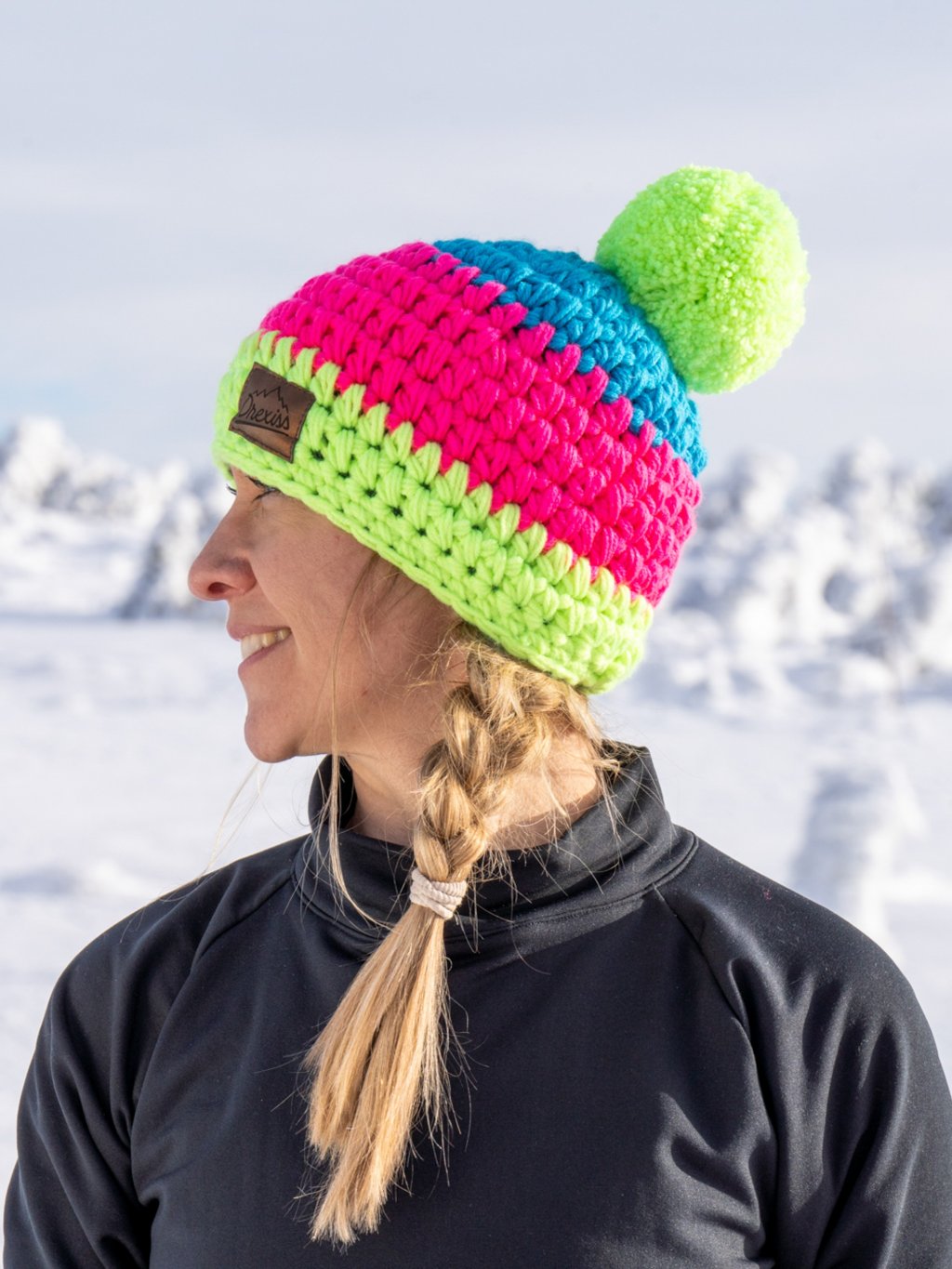 Výrazná bambule dodává čepici moderní a hravý vzhled, takže kulich vynikne jak ve městě, tak na horách. Spojuje ruční výrobu, funkční vlastnosti a styl, který je na první pohled vidět.