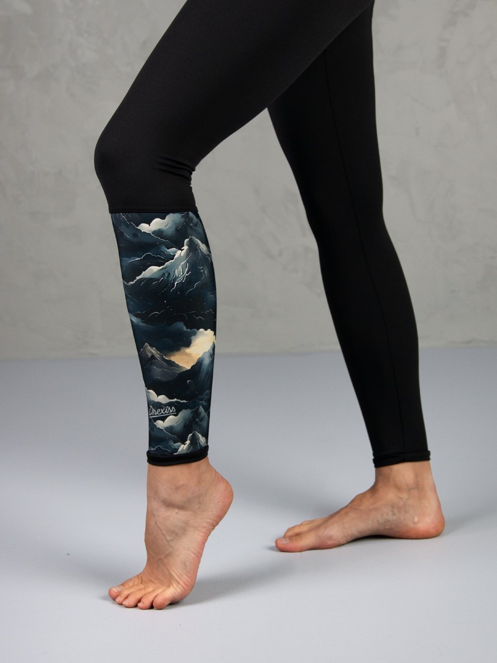 Pevný a pružný materiál je neprůhledný a příjemný na dotek, což zajišťuje maximální komfort při každém pohybu. Černý základ doplňuje originální design na jedné nohavici, který dodává legínám jedinečný vzhled, ale zároveň je ponechává snadno kombinovatelné s jakýmkoliv dalším kouskem ve vašem šatníku.