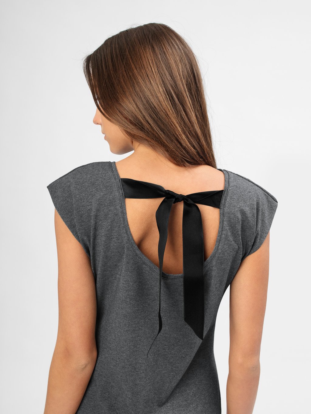 - Lodičkový výstřih vpředu – minimalistický a elegantní detail.