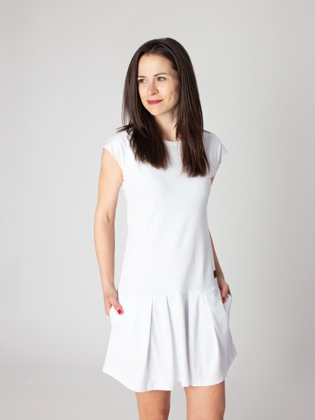 Letní šaty GAB jsou navrženy pro každodenní pohodlí i stylový vzhled. Lodičkový výstřih působí jemně a elegantně, zatímco skládaná sukně dodává šatům vzdušnost a lehký pohyb. Praktické kapsy přidávají ležérní prvek a zvyšují jejich využitelnost v běžném nošení.
