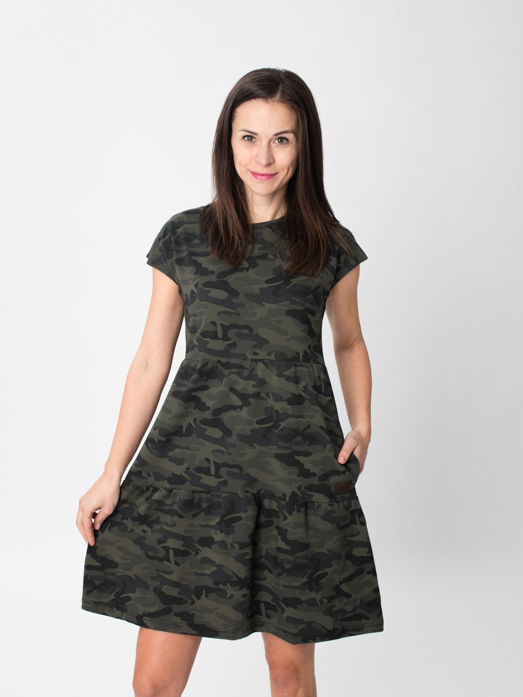 Šaty SOFIE působí uvolněně, ale zároveň stylově díky postupně členěnému střihu. Lodičkový výstřih a krátké rukávy dodávají šatům čistý a elegantní vzhled. Kapsy přidávají praktičnost.