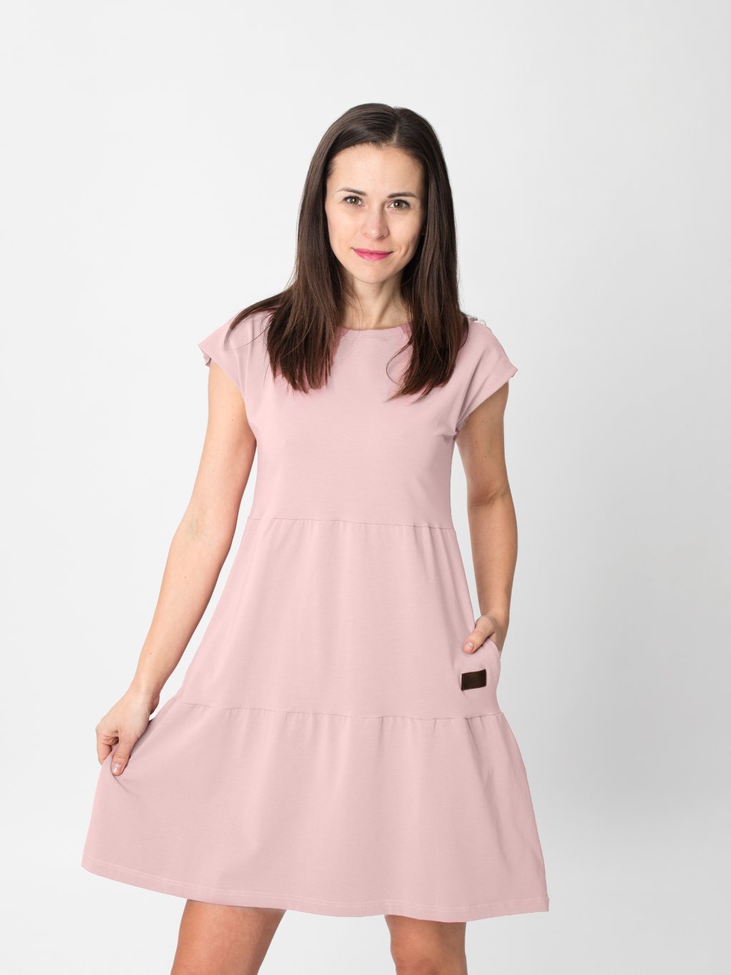 Šaty SOFIE působí uvolněně, ale zároveň stylově díky postupně členěnému střihu. Lodičkový výstřih a krátké rukávy dodávají šatům čistý a elegantní vzhled. Kapsy přidávají praktičnost.