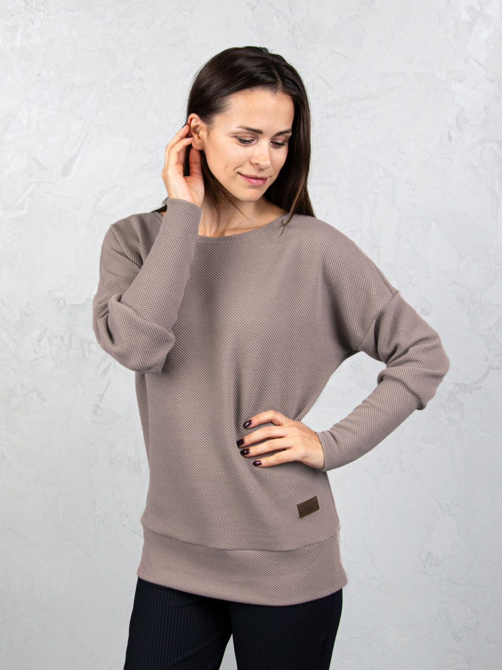 Mikina GLAMOUR je perfektní volbou pro ženy, které chtějí spojit eleganci s komfortem. Je vhodná pro každodenní nošení a zároveň si zachovává sofistikovaný vzhled. Je ušitá z kvalitního materiálu se strukturou, který dodává neotřelý vzhled a zajišťuje příjemný pocit po celý den. Lodičkový výstřih působí jemně a žensky, zatímco netopýří rukávy dodávají mikině moderní a uvolněný charakter.