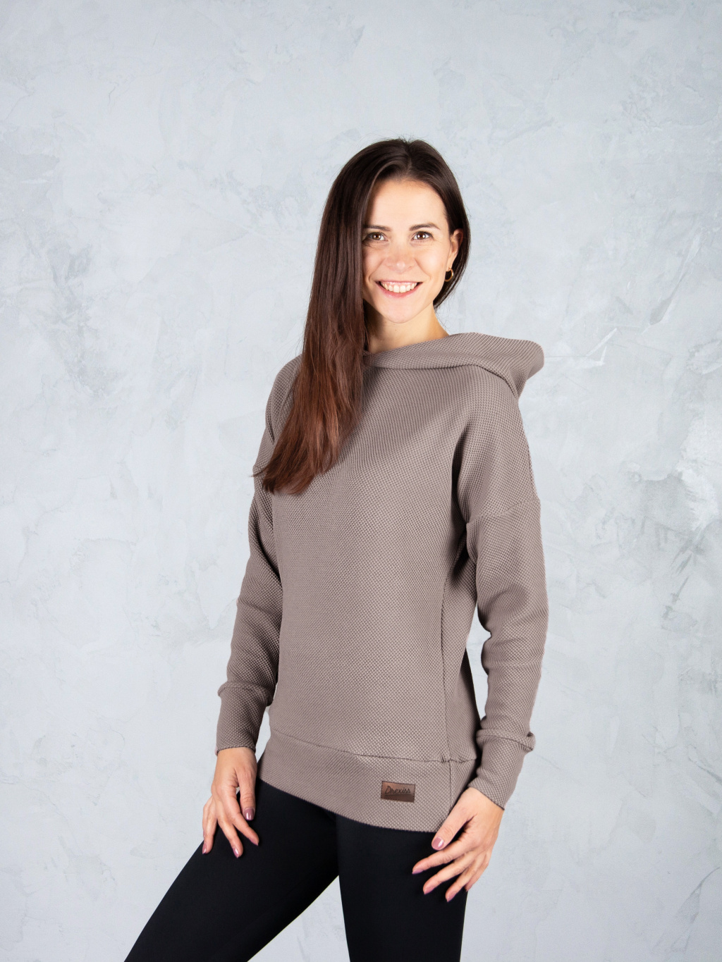 Mikina Naty je dokonalým spojením pohodlí a elegance pro každodenní nošení. Díky volnému střihu, netopýřím rukávům a praktické kapuci je tento kousek ideální pro všechny ženy, které chtějí vypadat stylově, ale zároveň si užívat komfort. Mikina je vyrobena z kvalitního materiálu se strukturou, který zajišťuje jak unikátní vzhled, tak pohodlný pocit po celý den. Zakončení do nápletu jí dodává šmrnc a zároveň poskytuje perfektní přizpůsobení postavě.