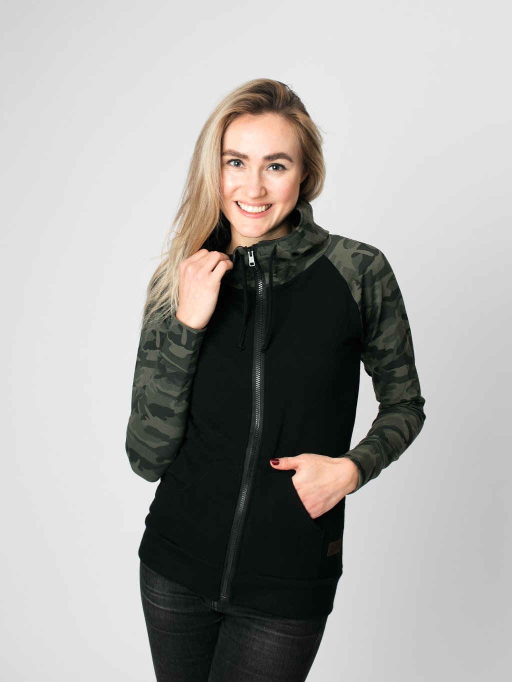- Kontrastní barvy rukávů a kapuce – originální a trendy design.