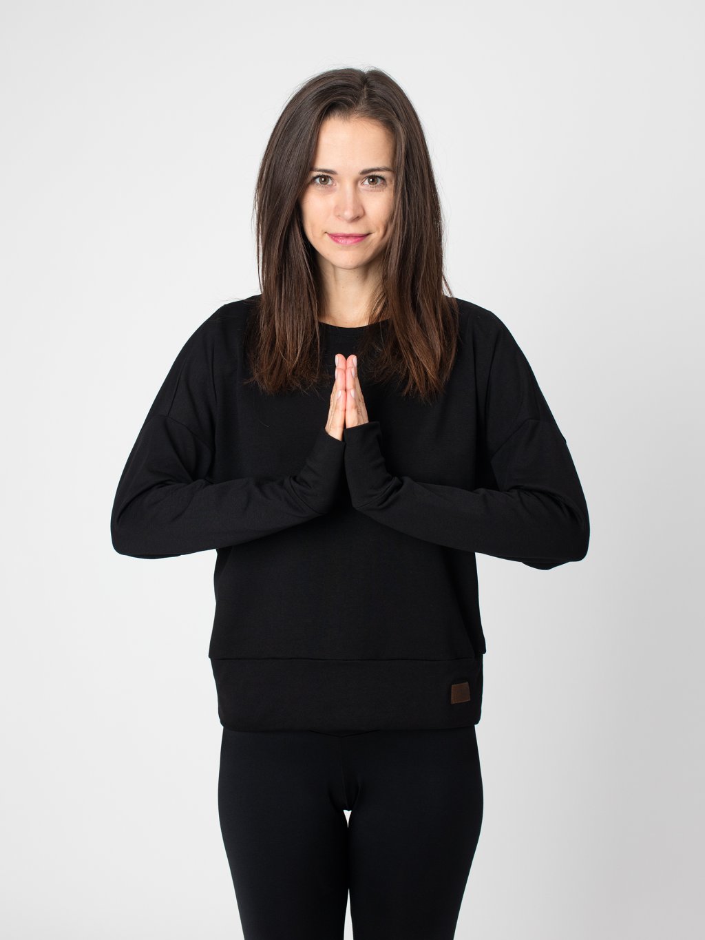 Mikina YOGA propojuje komfort, volnost pohybu a originální design. Je ušitá z příjemného a pružného bavlněného úpletu vyšší gramáže, který se skvěle přizpůsobí tělu a poskytuje maximální pohodlí. Volnější střih s netopýřími rukávy neomezuje v pohybu a široký náplet v pase krásně drží tvar.