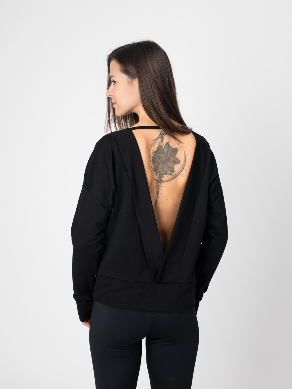 Skvělá volba pro milovnice sportovně-elegantního stylu, které ocení neotřelý detail v podobě odhalených zad a možnost nosit mikinu i bez trička.
