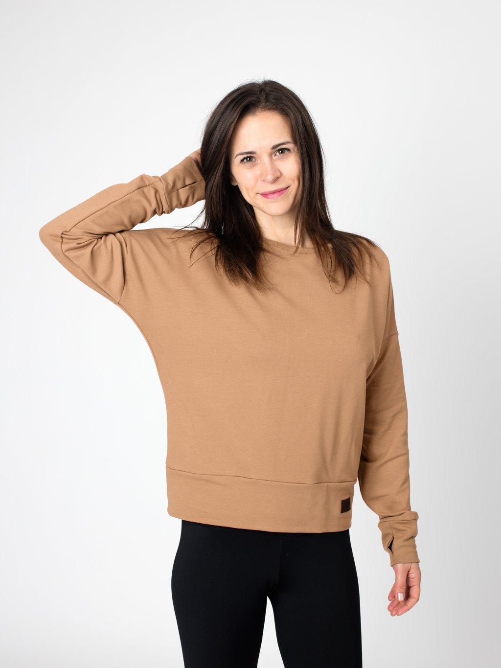 Mikina YOGA propojuje komfort, volnost pohybu a originální design. Je ušitá z příjemného a pružného bavlněného úpletu vyšší gramáže, který se skvěle přizpůsobí tělu a poskytuje maximální pohodlí. Volnější střih s netopýřími rukávy neomezuje v pohybu a široký náplet v pase krásně drží tvar.
