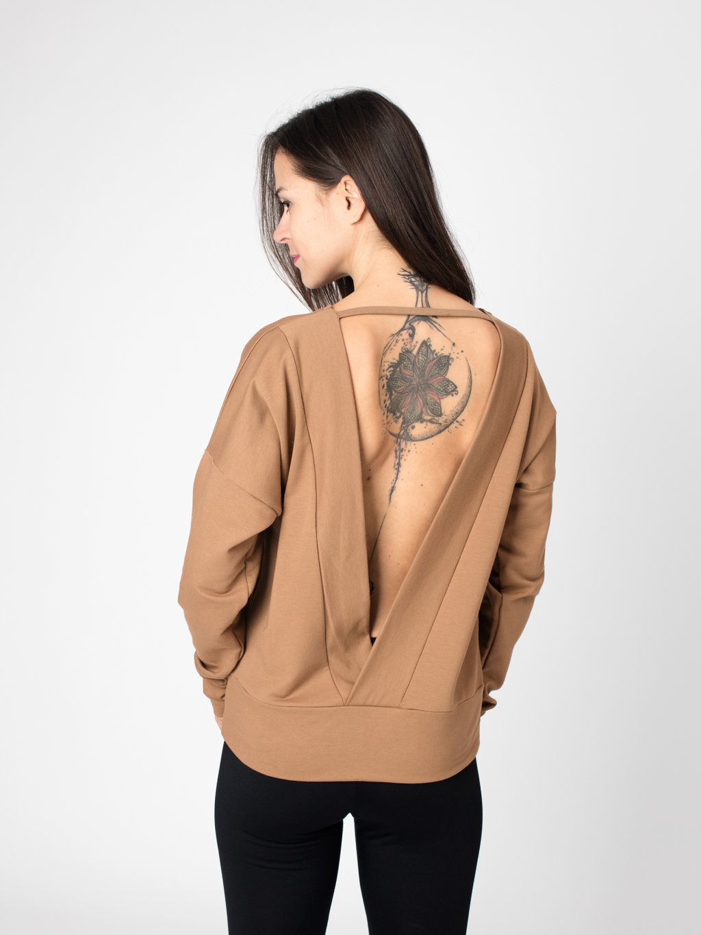Skvělá volba pro milovnice sportovně-elegantního stylu, které ocení neotřelý detail v podobě odhalených zad a možnost nosit mikinu i bez trička.