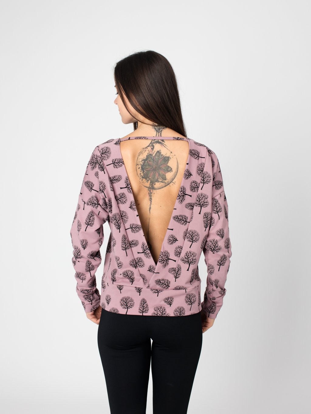 Skvělá volba pro milovnice sportovně-elegantního stylu, které ocení neotřelý detail v podobě odhalených zad a možnost nosit mikinu i bez trička.