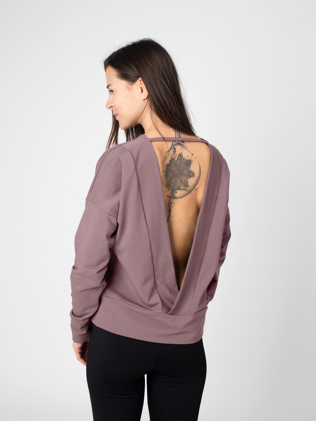 Skvělá volba pro milovnice sportovně-elegantního stylu, které ocení neotřelý detail v podobě odhalených zad a možnost nosit mikinu i bez trička.