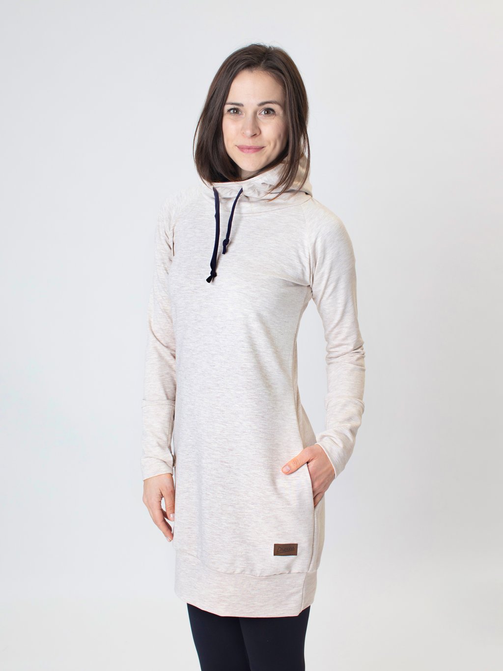 Kapuce s možností stažení ochrání před větrem, kapsy na bocích poslouží na drobnosti i na zahřátí rukou a prodloužené rukávy s dírami na palce dodávají mikinošatům originální vzhled a extra pohodlí. Snadno je zkombinujete s legínami, džegínami nebo je obléknete samostatně jako šaty. Skvělá volba pro chladnější dny – od podzimu přes jaro až po letní večery.