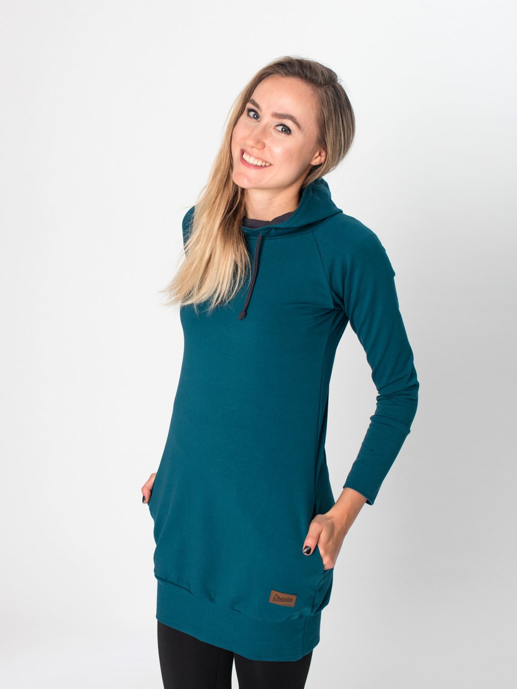 Kapuce s možností stažení ochrání před větrem, kapsy na bocích poslouží na drobnosti i na zahřátí rukou a prodloužené rukávy s dírami na palce dodávají mikinošatům originální vzhled a extra pohodlí. Snadno je zkombinujete s legínami, džegínami nebo je obléknete samostatně jako šaty. Skvělá volba pro chladnější dny – od podzimu přes jaro až po letní večery.
