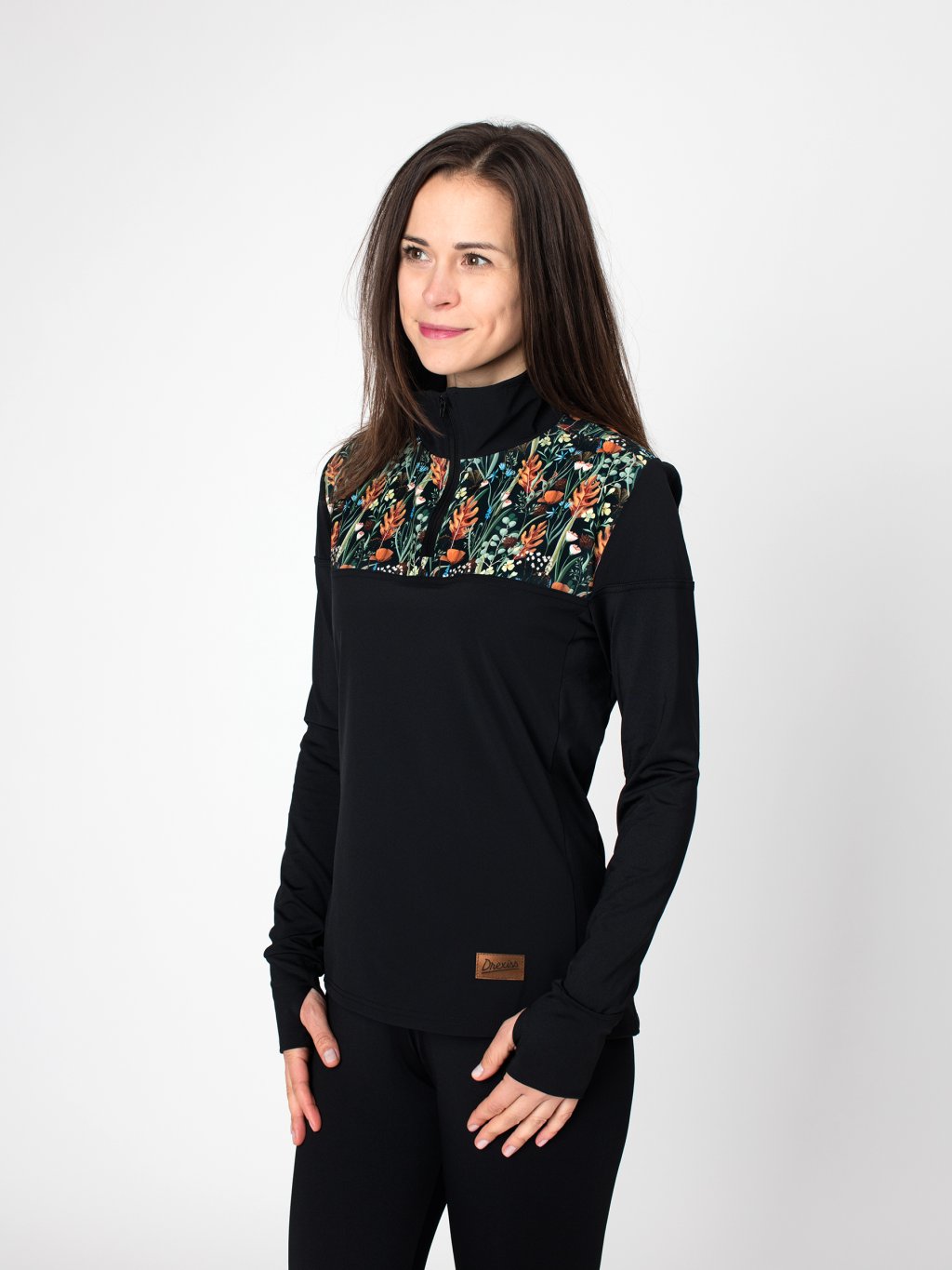 - Střih přes hlavu s krátkým zipem – snadné oblékání a ochrana krku před chladem