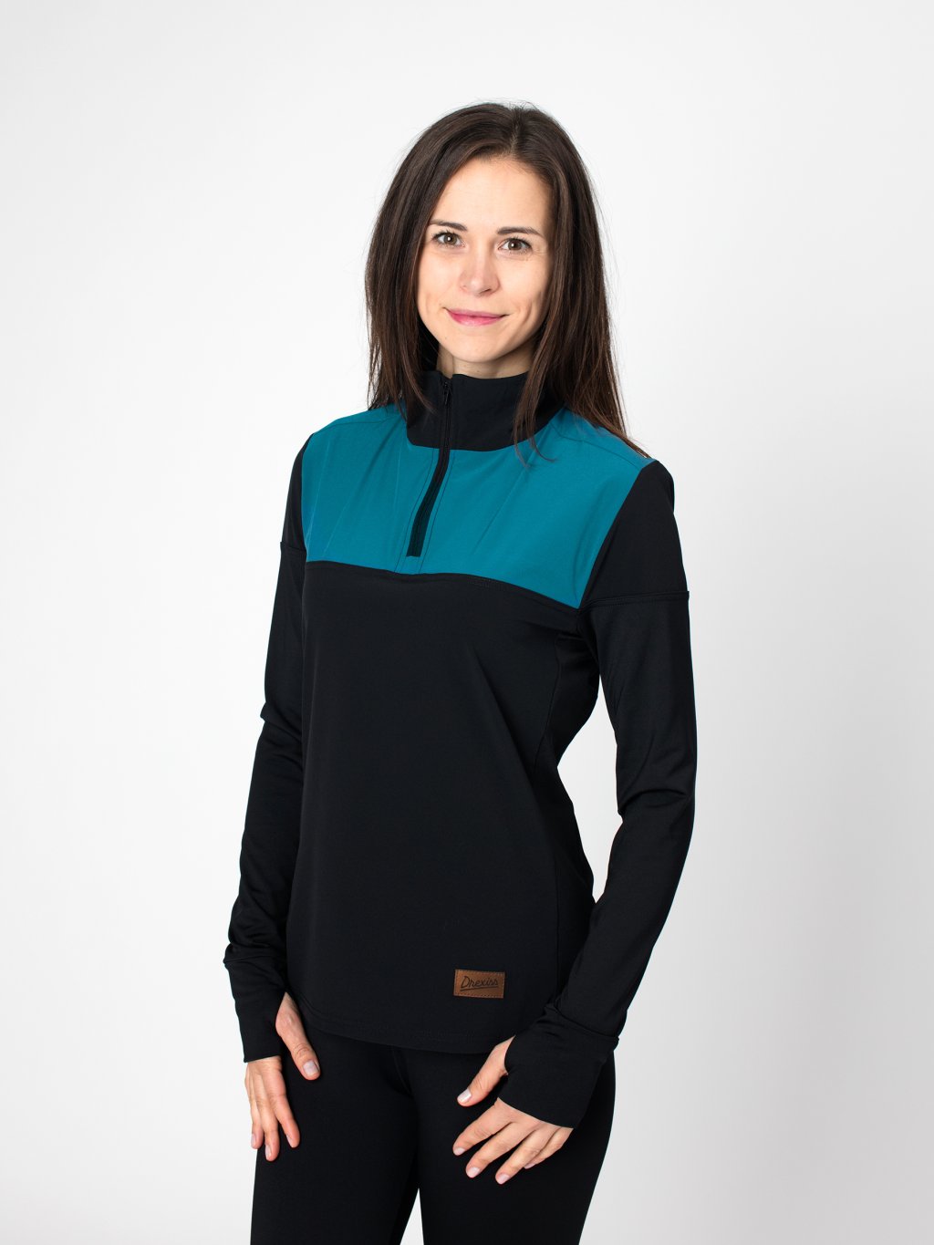 - Střih přes hlavu s krátkým zipem – snadné oblékání a ochrana krku před chladem