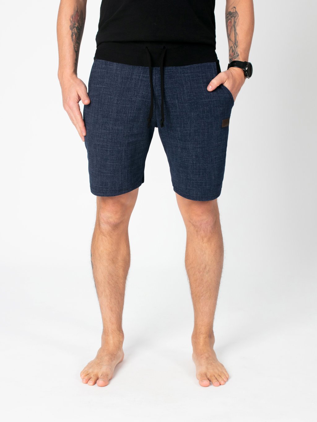 Pánské kraťasy jsou navrženy tak, aby spojovaly komfort s moderním vzhledem. Střih s vyšším pasem a pružným nápletem se stahovací šňůrkou zaručuje, že skvěle sedí a přizpůsobí se každé postavě. Prostorné kapsy doplňuje černá podšívka, která společně s kontrastním pasem dodává kraťasům originální a výraznější detail.
