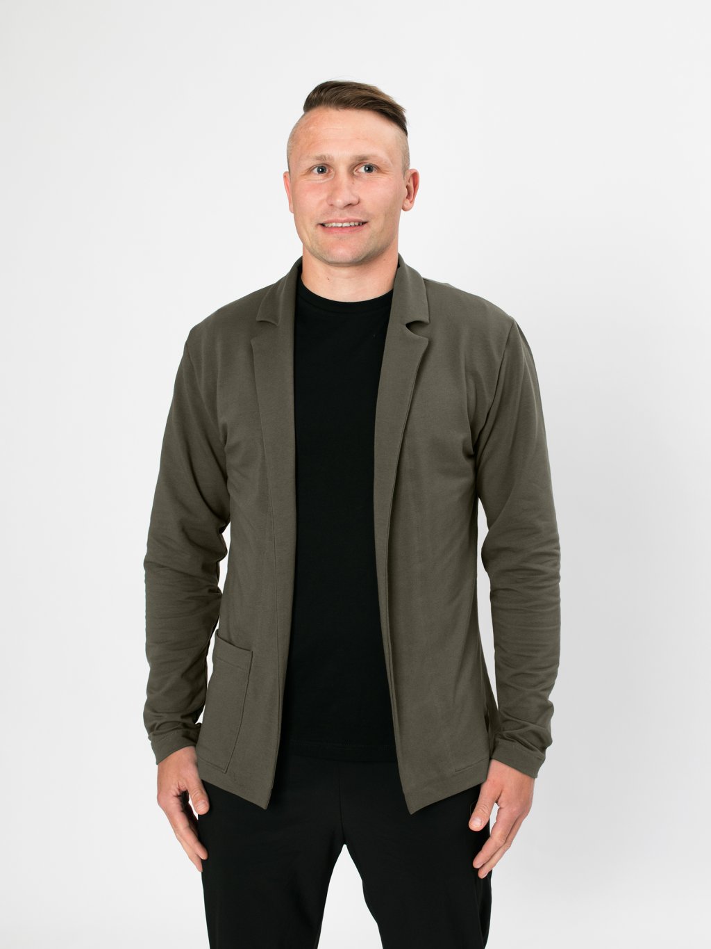 Pánské sako BERRY je univerzálním kouskem, který přináší vyváženou kombinaci elegance a komfortu. Je ušité z kvalitního bavlněného úpletu vyšší gramáže, který je příjemný na těle a zároveň drží tvar. Rovné linie střihu podtrhují uhlazený vzhled saka, zatímco náplety na rukávech dodávají pohodlí a lehce uvolněný styl.