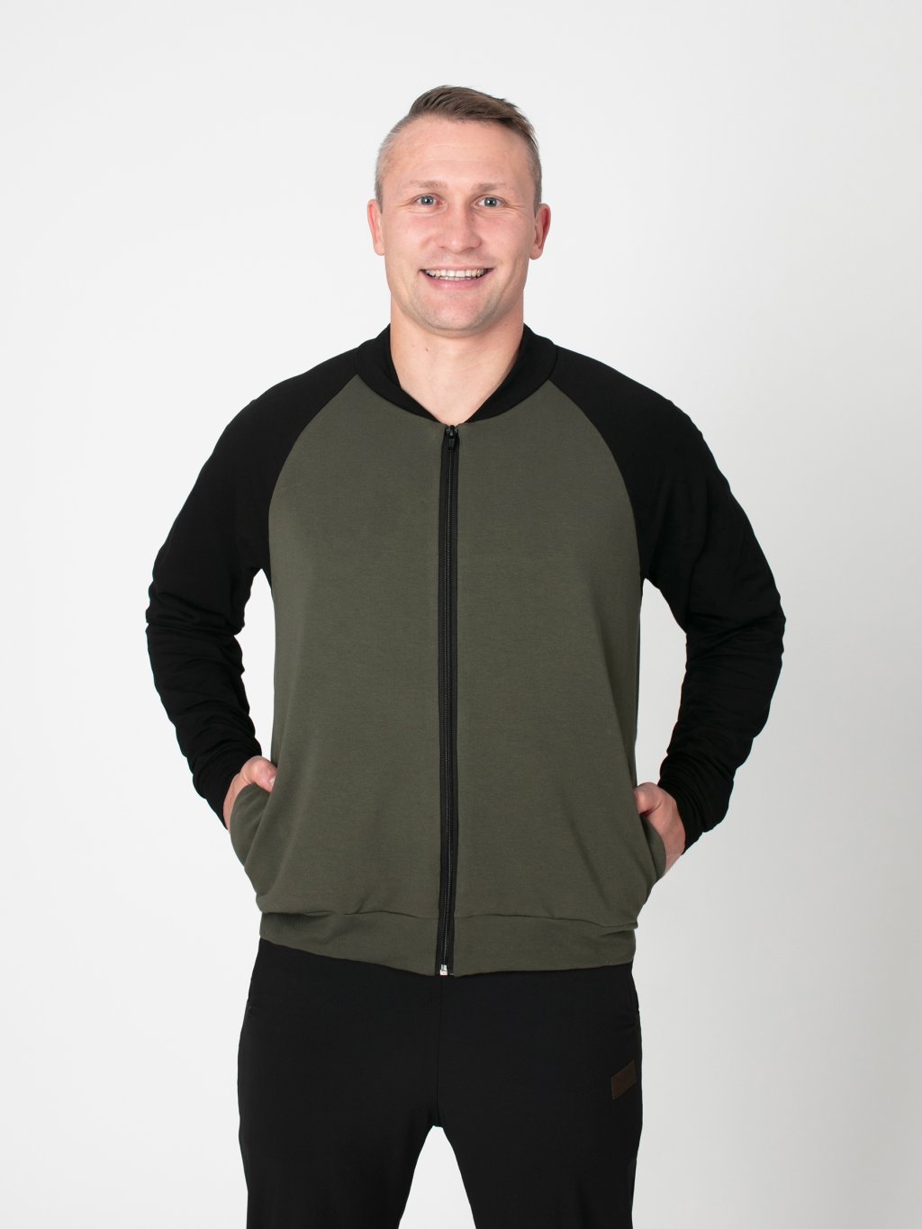 Pánský bomber je kousek, který by neměl chybět v šatníku žádného muže. Je ušitý z příjemného bavlněného úpletu vyšší gramáže, který zajišťuje komfort i pohodlí. Délka bomberu je navržena tak, aby lemovala pas, což podtrhuje mužskou siluetu a umožňuje snadné kombinování s džínami, kalhotami i šortkami.