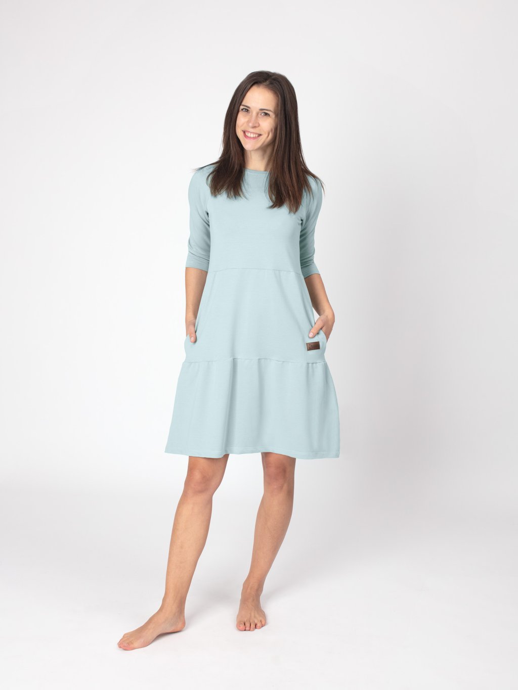 Podzimní šaty SOFIE jsou navrženy pro každodenní pohodlí i stylový vzhled. Lodičkový výstřih působí jemně a elegantně, zatímco postupně členitý střih dodává šatům vzdušnost a lehký pohyb. Praktické kapsy přidávají ležérní prvek a zvyšují jejich využitelnost v běžném nošení. Tříčtvrteční rukávy jsou praktické do proměnlivého počasí.