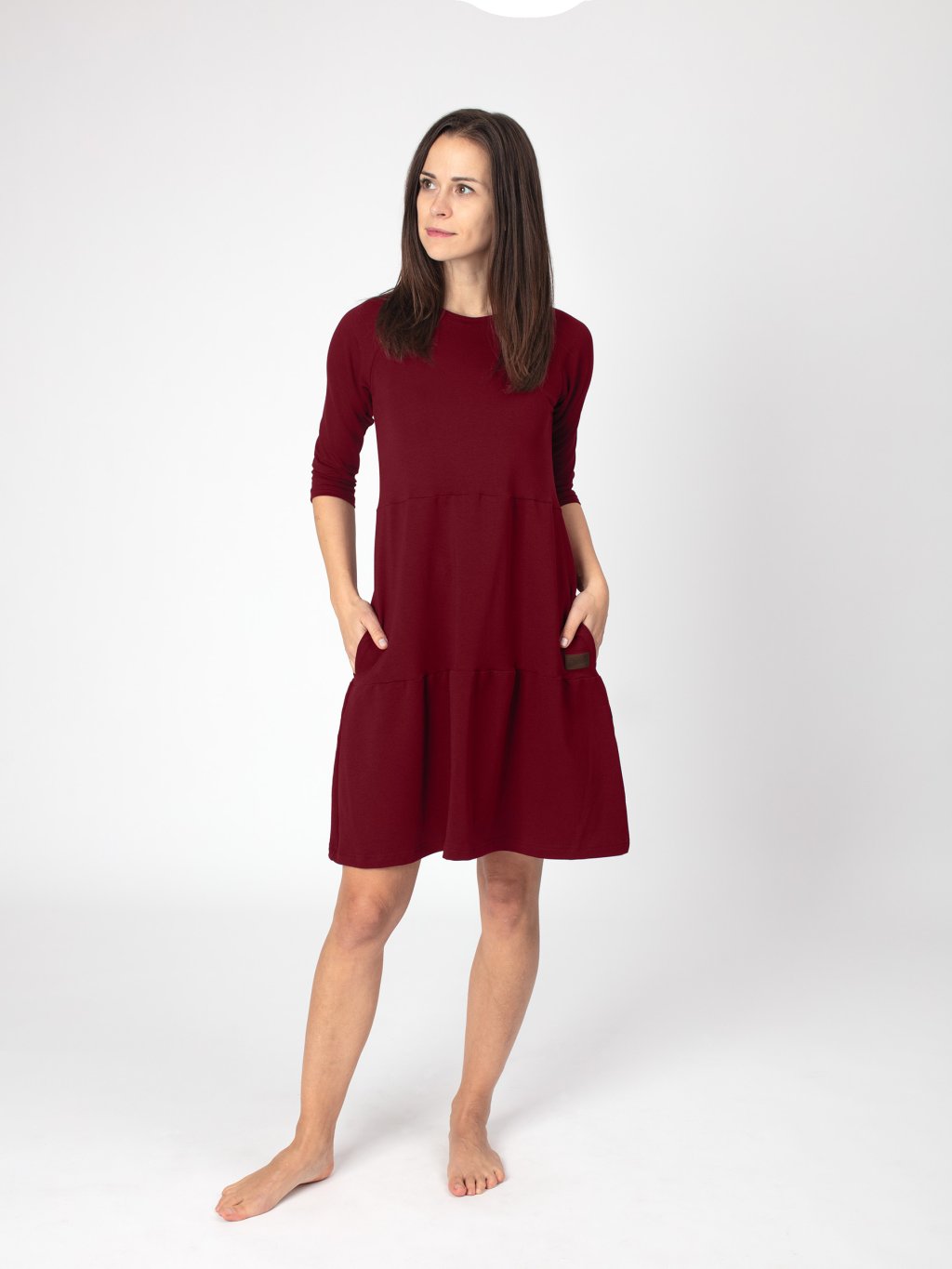 Podzimní šaty SOFIE jsou navrženy pro každodenní pohodlí i stylový vzhled. Lodičkový výstřih působí jemně a elegantně, zatímco postupně členitý střih dodává šatům vzdušnost a lehký pohyb. Praktické kapsy přidávají ležérní prvek a zvyšují jejich využitelnost v běžném nošení. Tříčtvrteční rukávy jsou praktické do proměnlivého počasí.